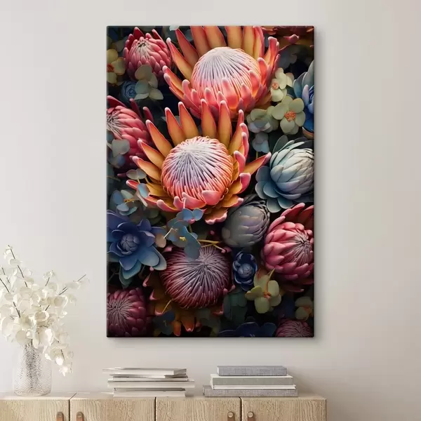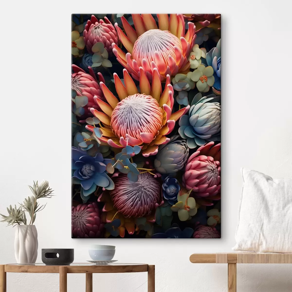 Tablouri Compoziție din proteas, eucalipt și plante suculente într-un stil artistic digital fotorealist s46925