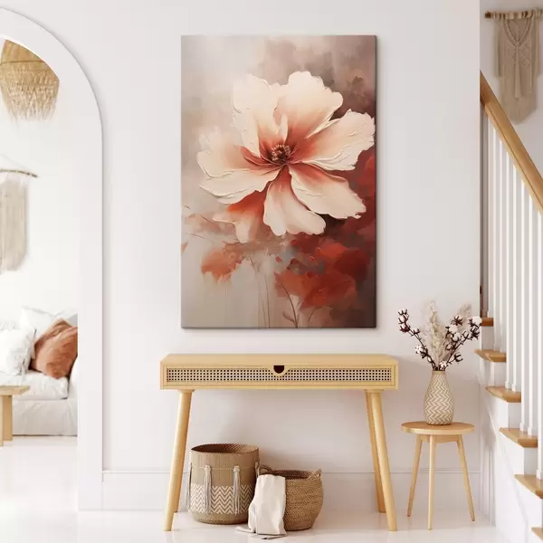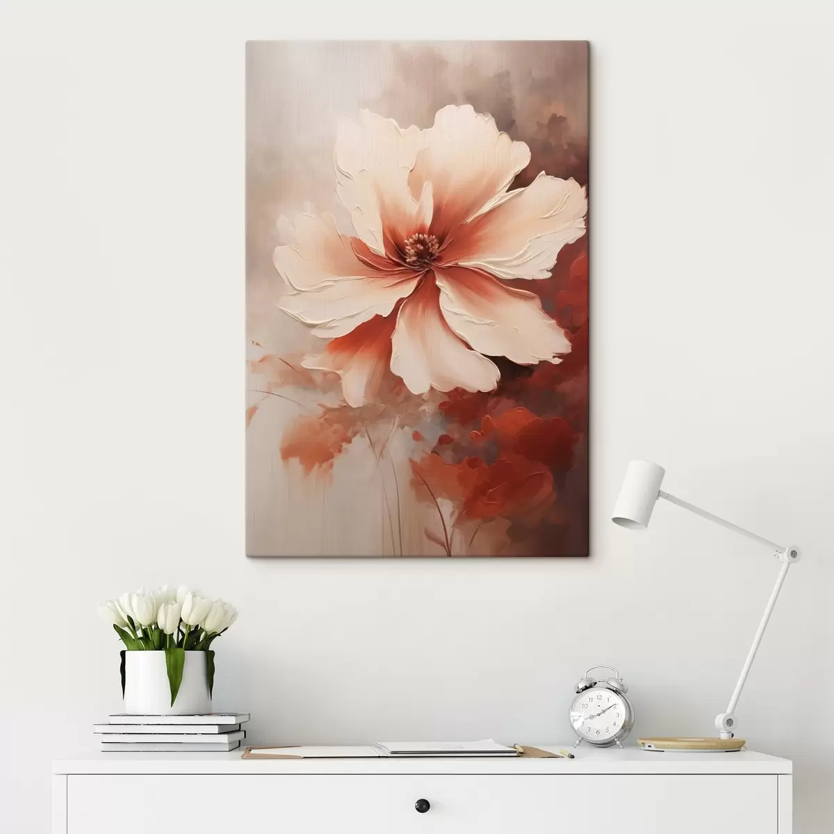 Pictură pe pânză Prim-plan al unei flori de coral alb pe un fundal estompat, în stilul picturii în ulei Nr s46939
