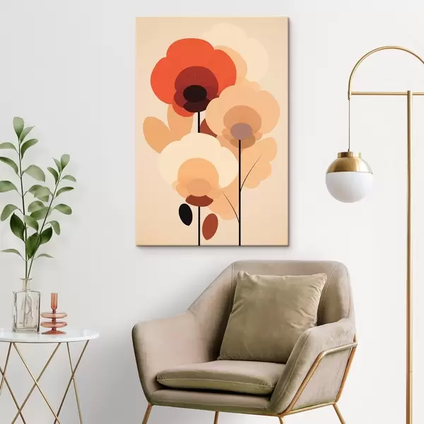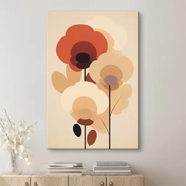Pictură pe pânză Flori abstracte într-o paletă caldă de bej, într-un stil minimalist Nr s46942