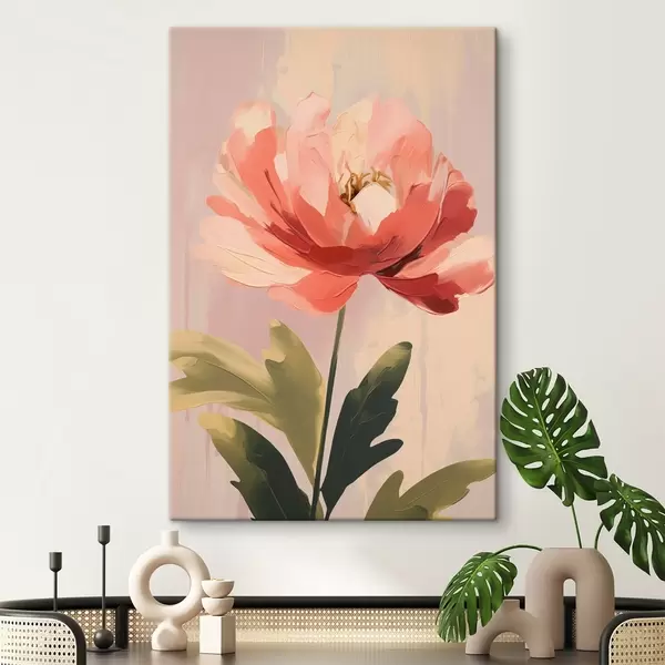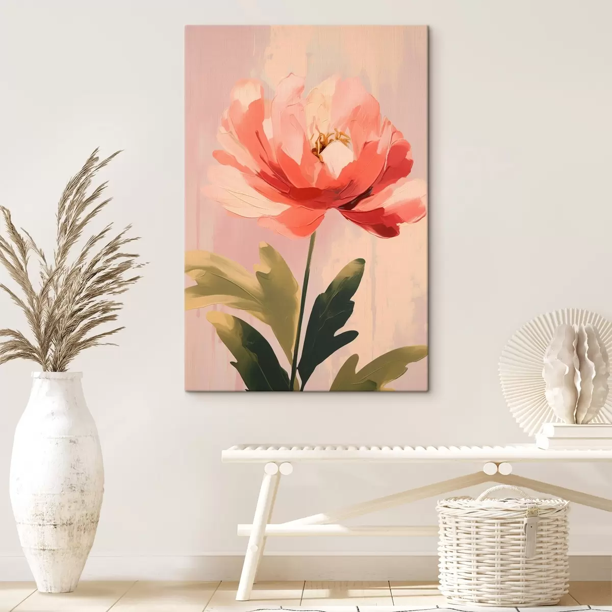 Pictură pe pânză Bujor coral pe fundal pastelat într-un stil ilustrativ de artă modernă Nr s46949