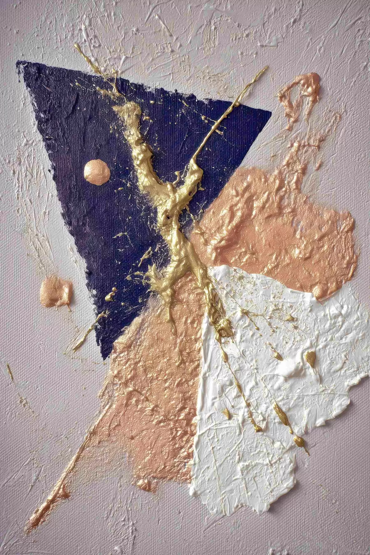 Tablouri Compoziție abstractă cu un triunghi albastru închis și pensule în relief în stilul picturii în ulei s46953