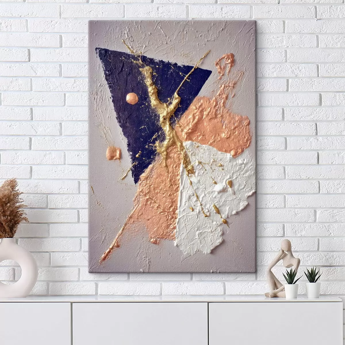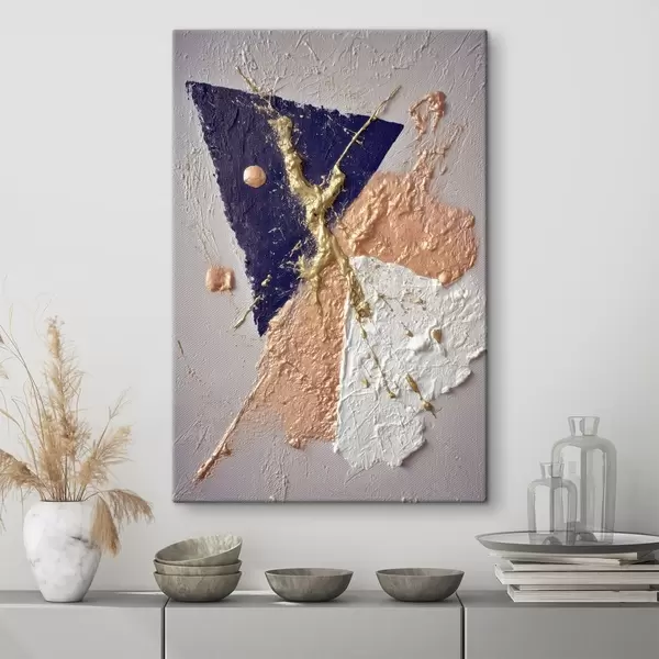 Pictură pe pânză Compoziție abstractă cu un triunghi albastru închis și pensule în relief în stilul picturii în ulei Nr s46953
