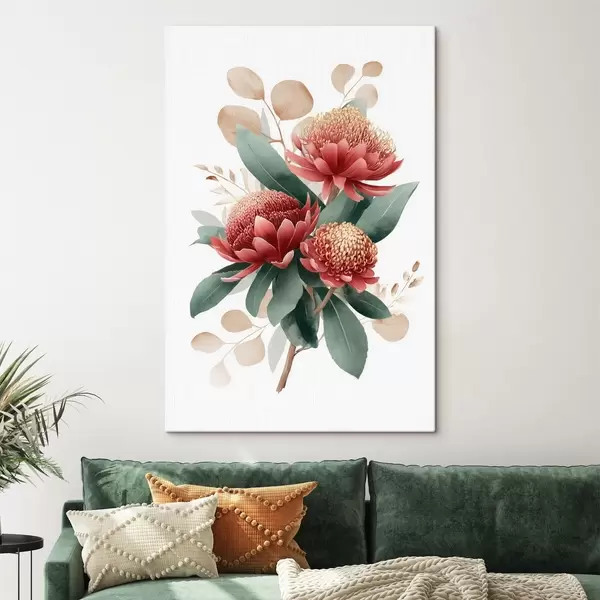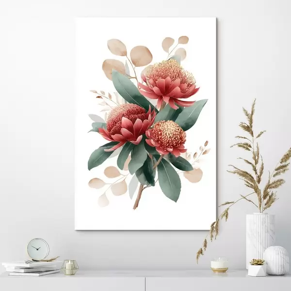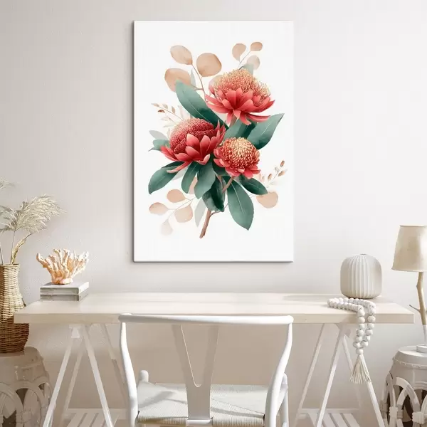 Pictură pe pânză Buchet expresiv de protee și frunze decorative în stilul ilustrațiilor de artă modernă Nr s46954
