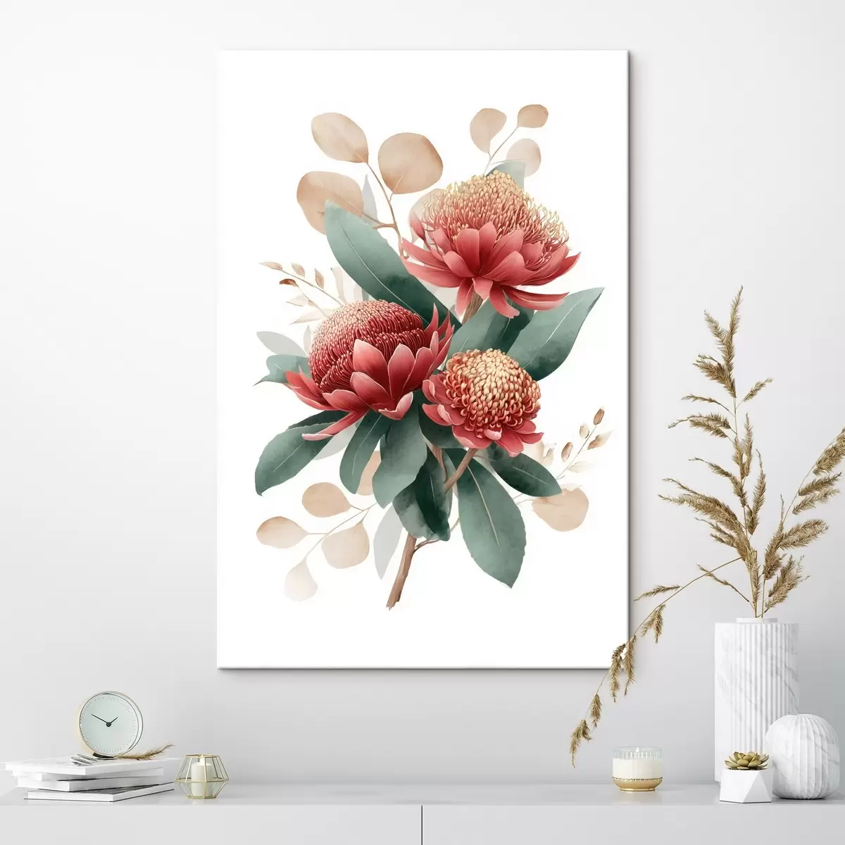 Tablouri Buchet expresiv de protee și frunze decorative în stilul ilustrațiilor de artă modernă s46954