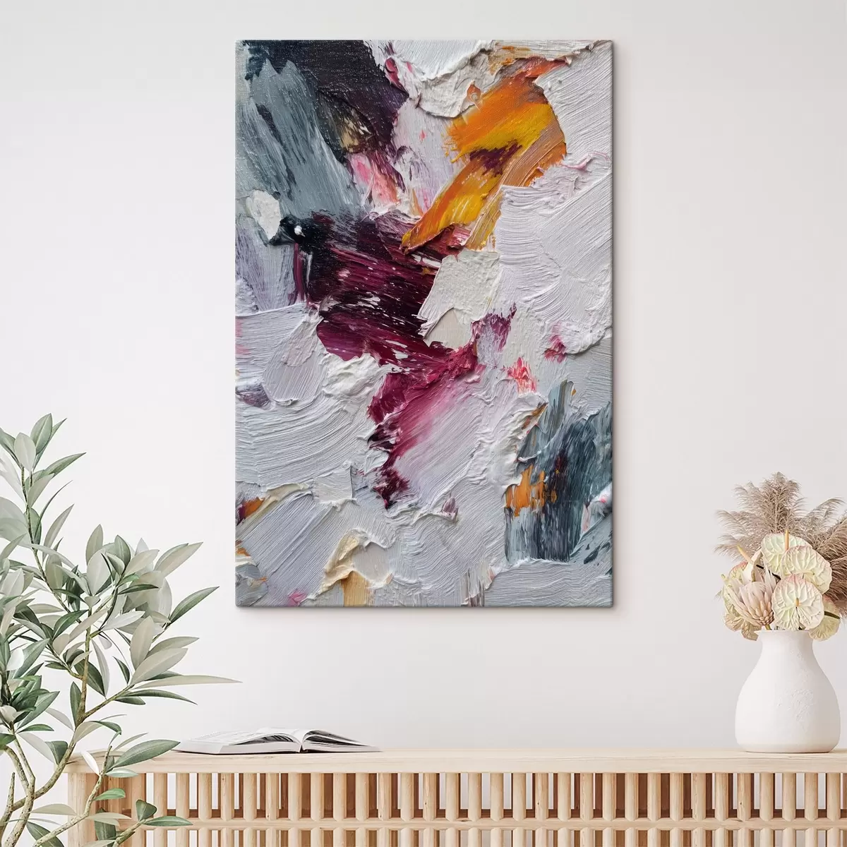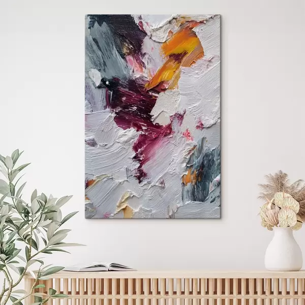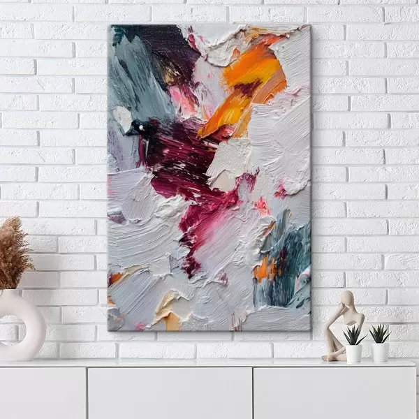 Tablouri Compoziție abstractă cu tușe intense de cireș și portocaliu în stilul picturii în ulei s46959