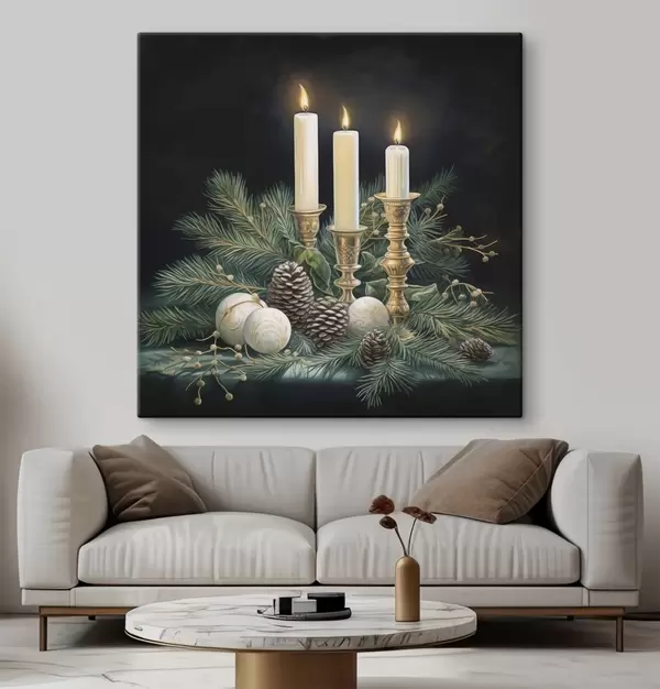 Tablouri Aranjament de Anul Nou, brad și lumânări s46963