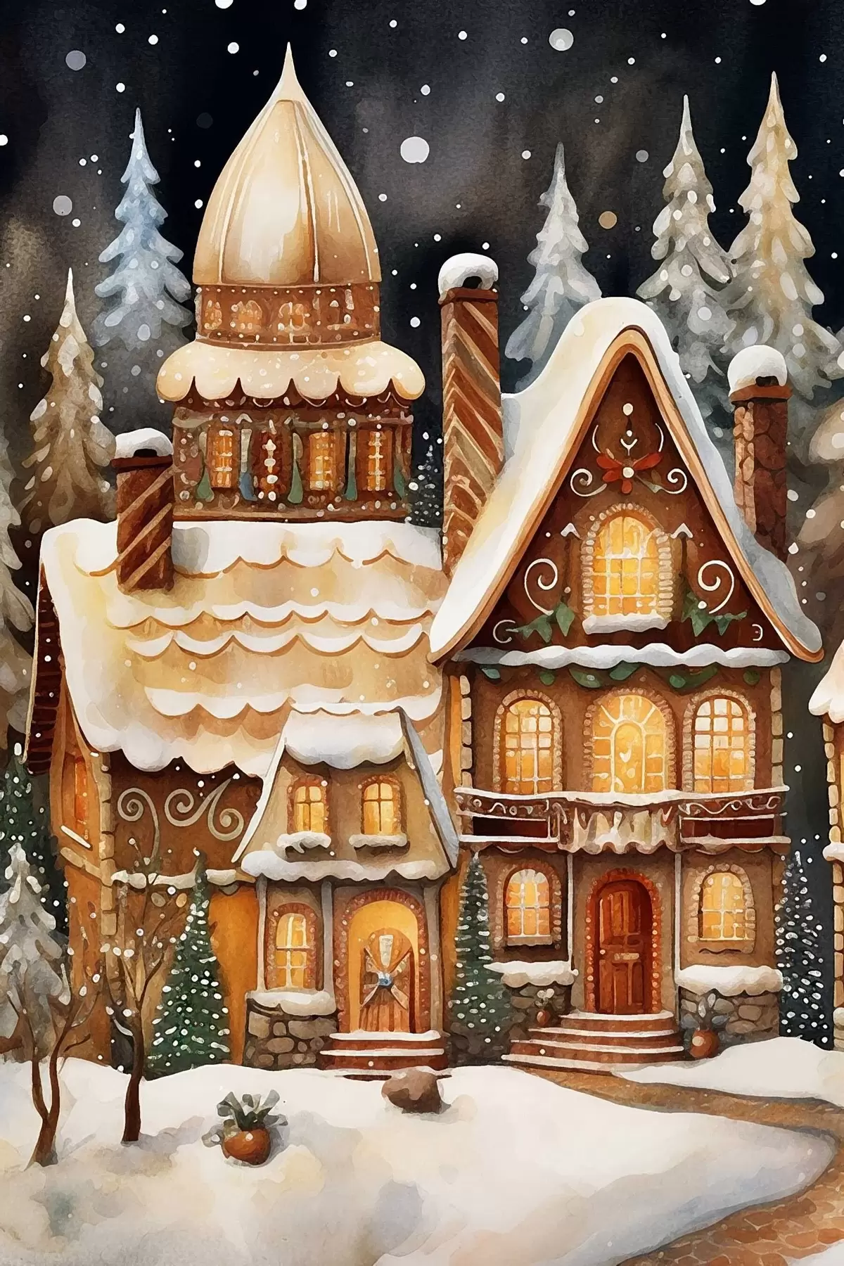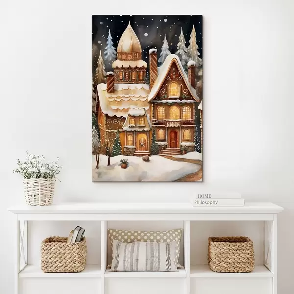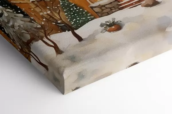 Pictură pe pânză Case acoperite de zăpadă în pădure Nr s46985