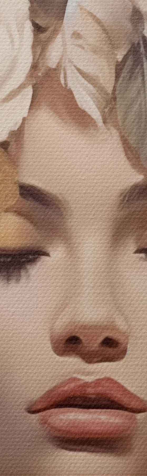 Țesătura fină a firelor de pe această pânză seamănă cu suprafața pânzelor artiștilor profesioniști.