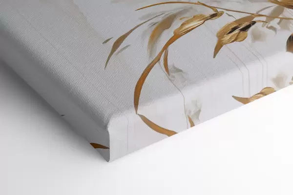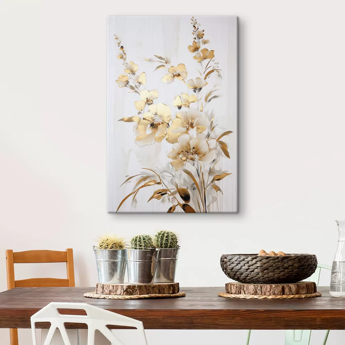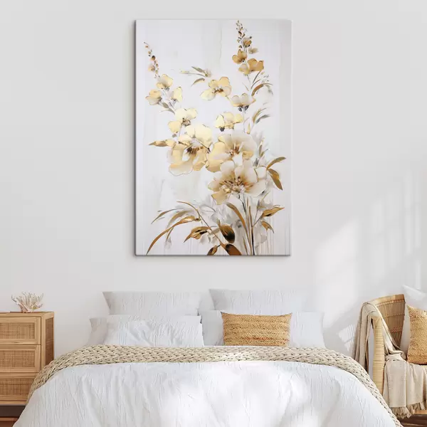 Pictură pe pânză Flori și frunze galbene texturate pe fond alb, cu tușe delicate Nr s47016