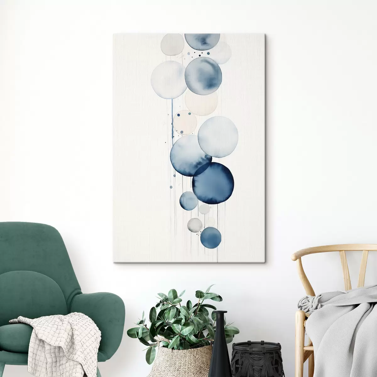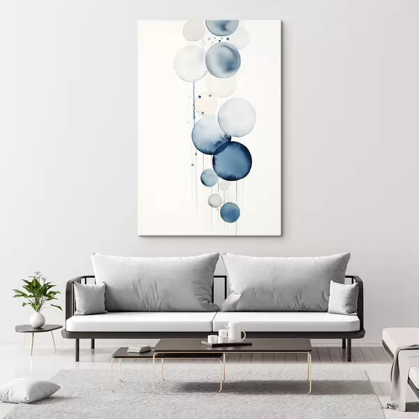 Pictură pe pânză Cercuri abstracte texturate albastre și albe, de diferite dimensiuni, pe fond alb Nr s47020