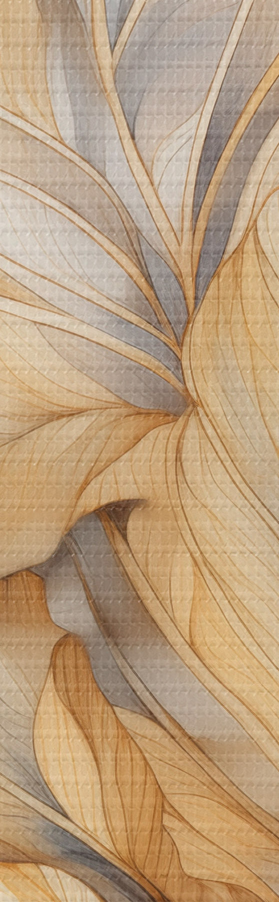 Tablouri Frunze abstracte mari, galbene și maronii, cu detalii complexe, pe fundalul unui peisaj montan s47022