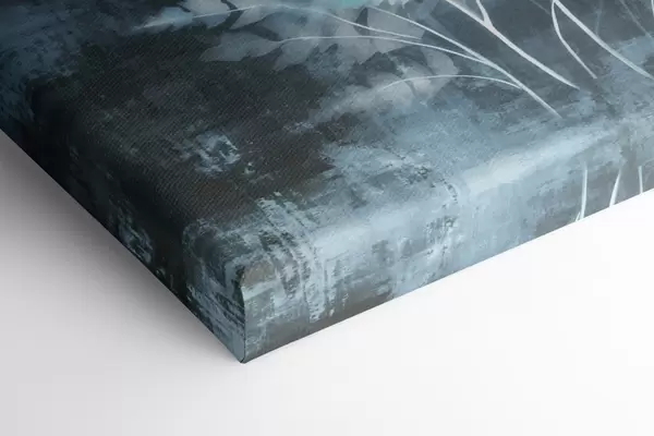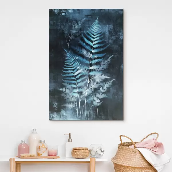 Pictură pe pânză Ferigi și plante albastre pe un fundal întunecat, texturat, cu accent pe detaliile complexe, efect de raze X Nr s47026
