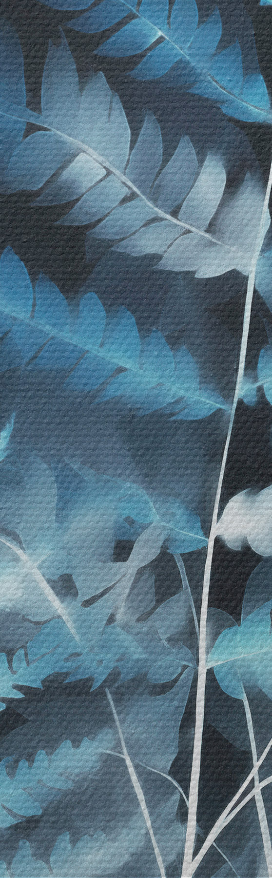 Tablouri Ferigi și plante albastre pe un fundal întunecat, texturat, cu accent pe detaliile complexe, efect de raze X s47026