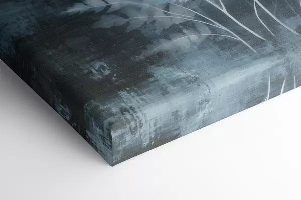 Pictură pe pânză Ferigi și plante albastre pe un fundal întunecat, texturat, cu accent pe detaliile complexe, efect de raze X Nr s47026