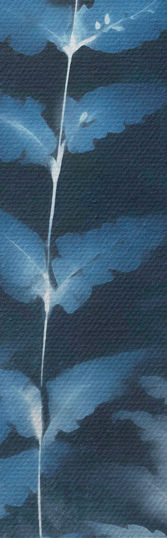 Tablouri Ferigi și plante albastre pe un fundal întunecat, texturat, cu accent pe detaliile complexe, efect de raze X s47027