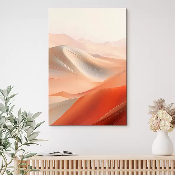Pictură pe pânză Peisaj abstract de deșert cu dune de nisip în mișcare, în tonuri calde de portocaliu și alb Nr s47030