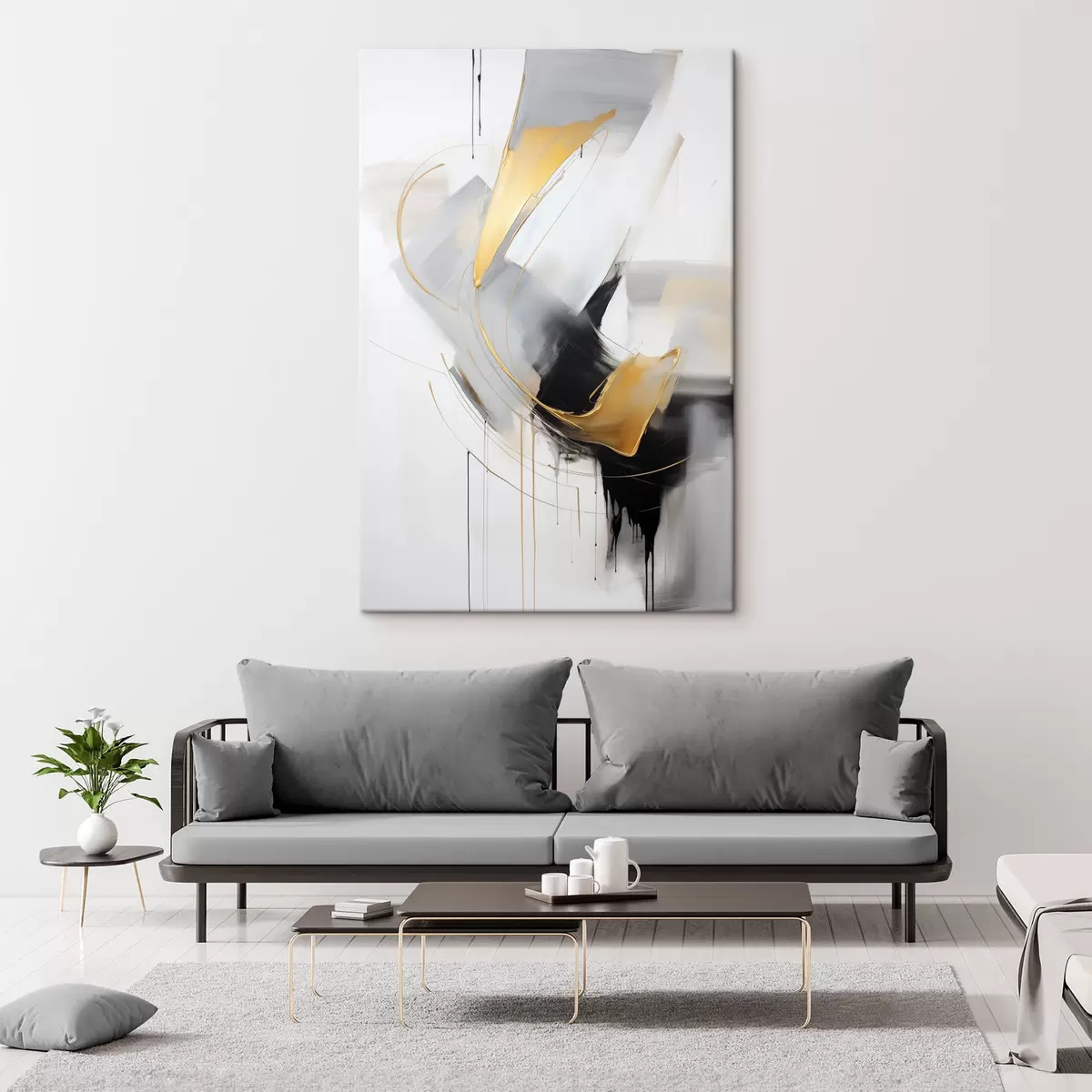 Pictură pe pânză Pictură abstractă cu imitații de pensule galbene, negre și albe, linii dinamice Nr s47034