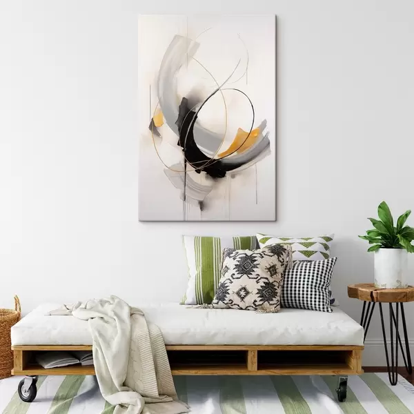 Pictură pe pânză Pictură abstractă cu imitații de pensule galbene, negre și albe, linii dinamice Nr s47035