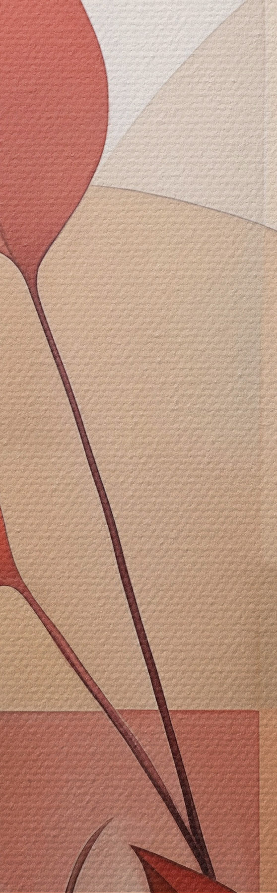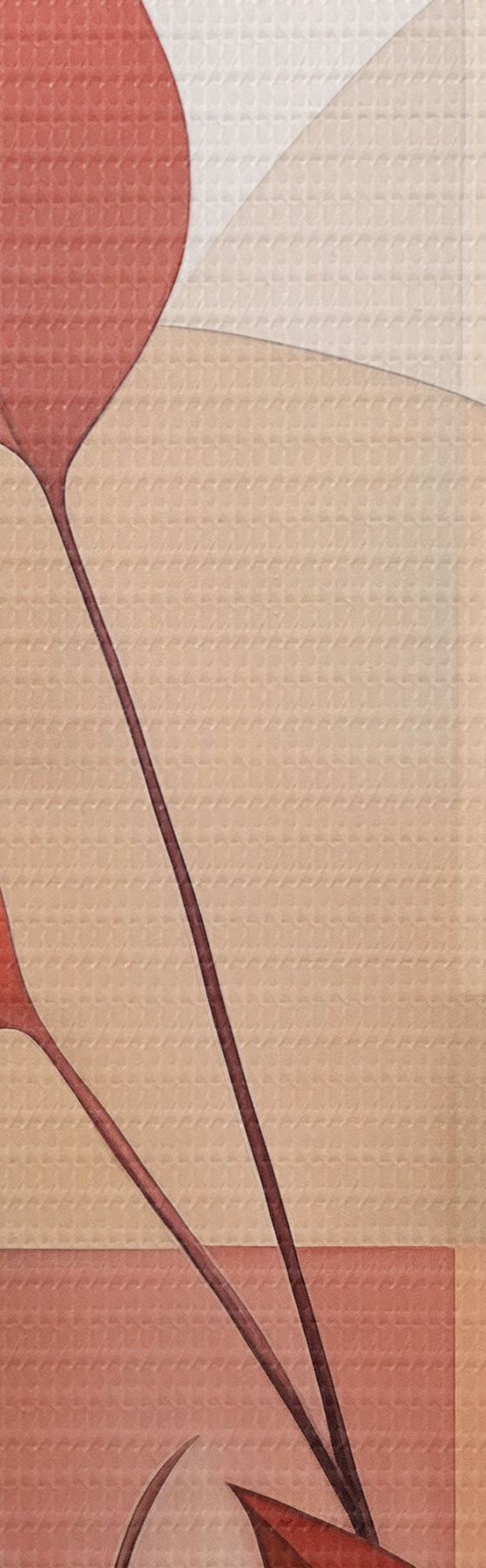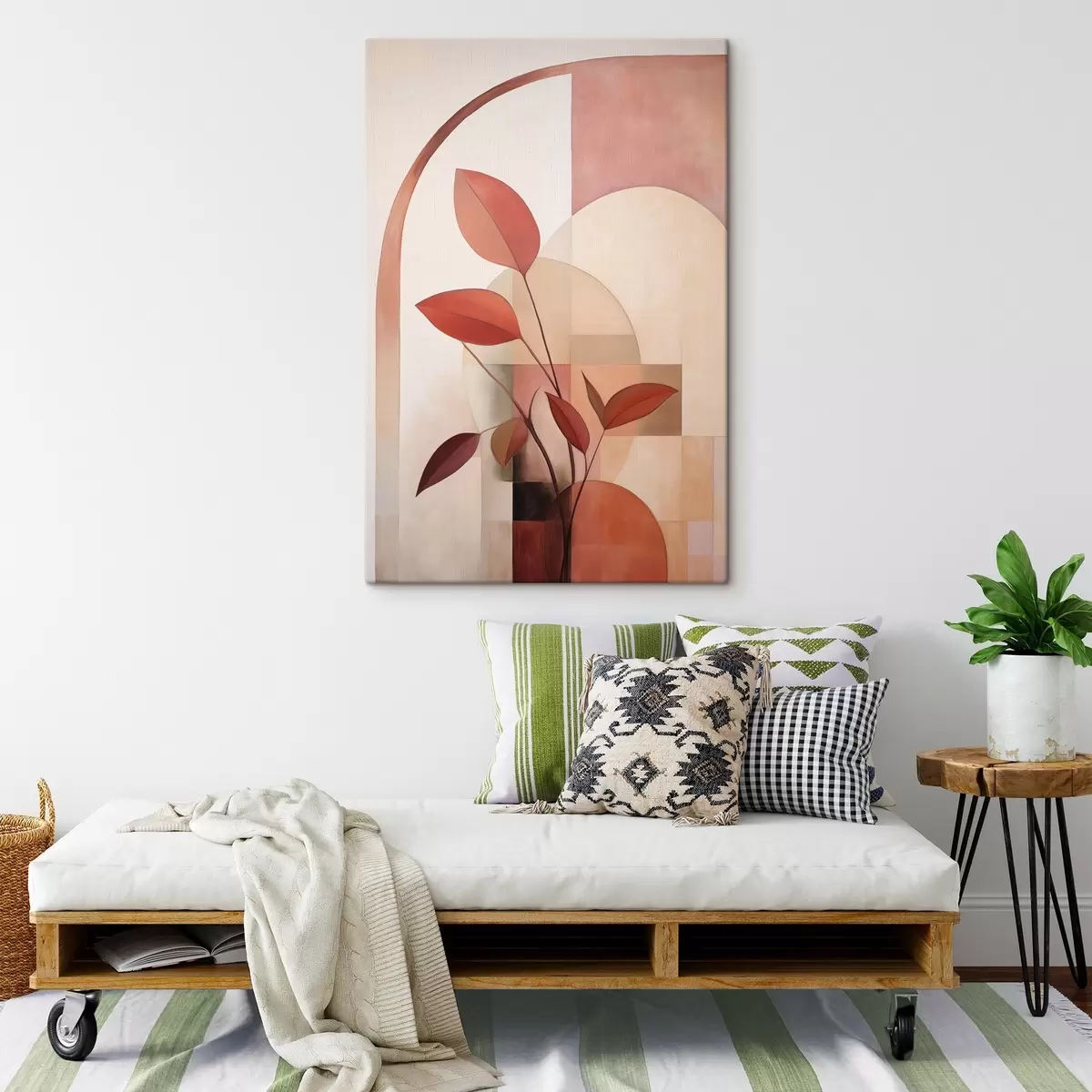 Pictură pe pânză Plantă abstractă cu frunze roșii pe un fundal de forme geometrice și culori delicate, discrete Nr s47040