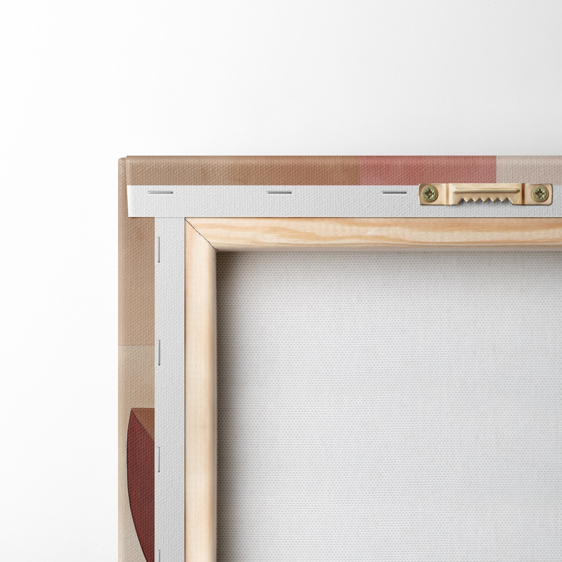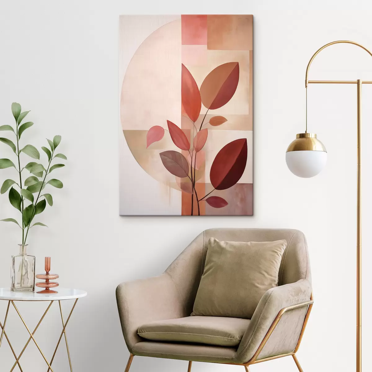 Pictură pe pânză Plantă abstractă cu frunze roșii pe un fundal de forme geometrice și culori delicate, discrete Nr s47041