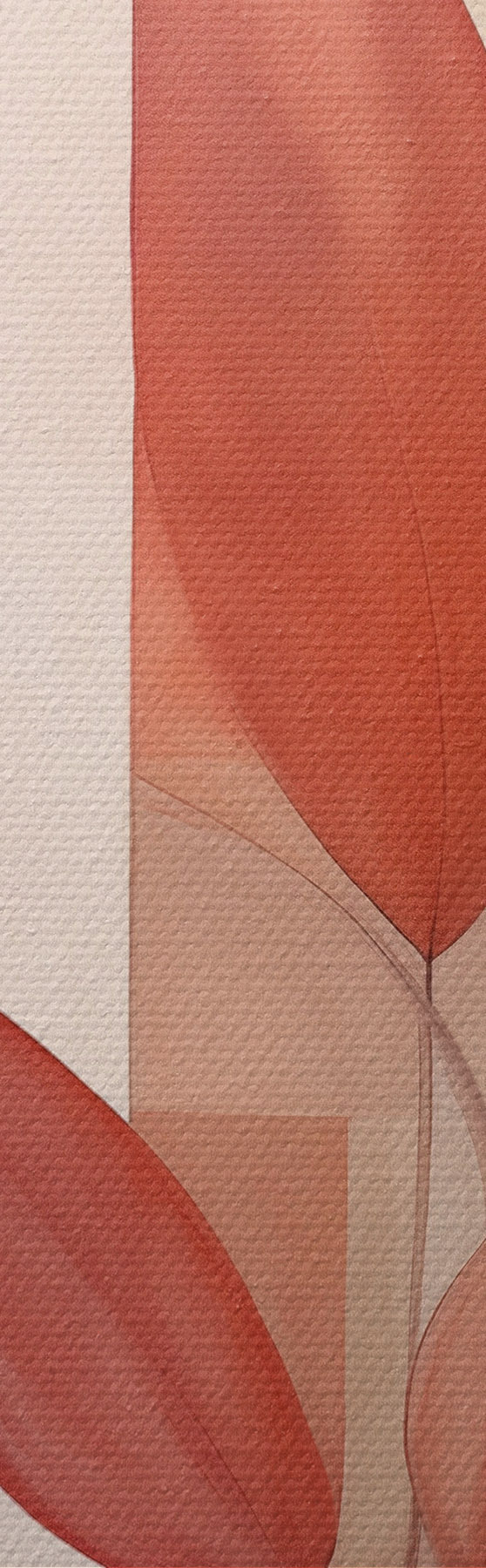 Tablouri Plantă abstractă cu frunze roșii pe un fundal de forme geometrice și culori delicate, discrete s47041