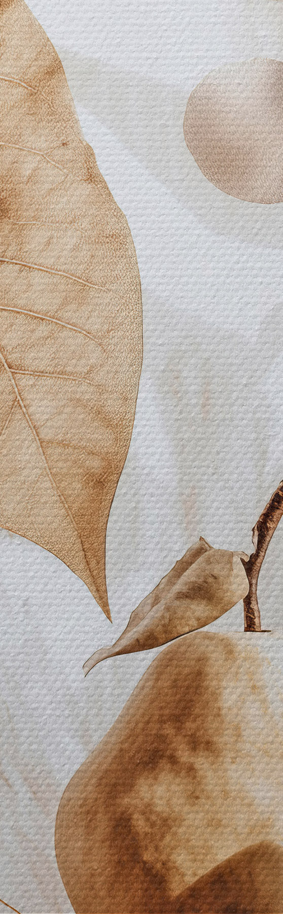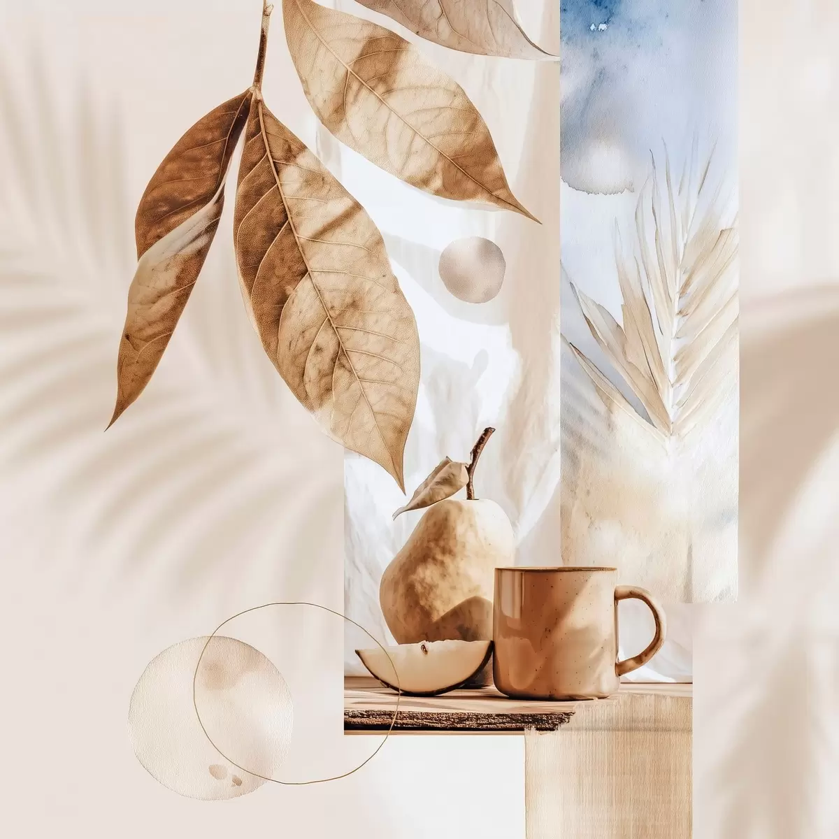 Tablouri Rezumat cu frunze, pară și ceașcă s47047