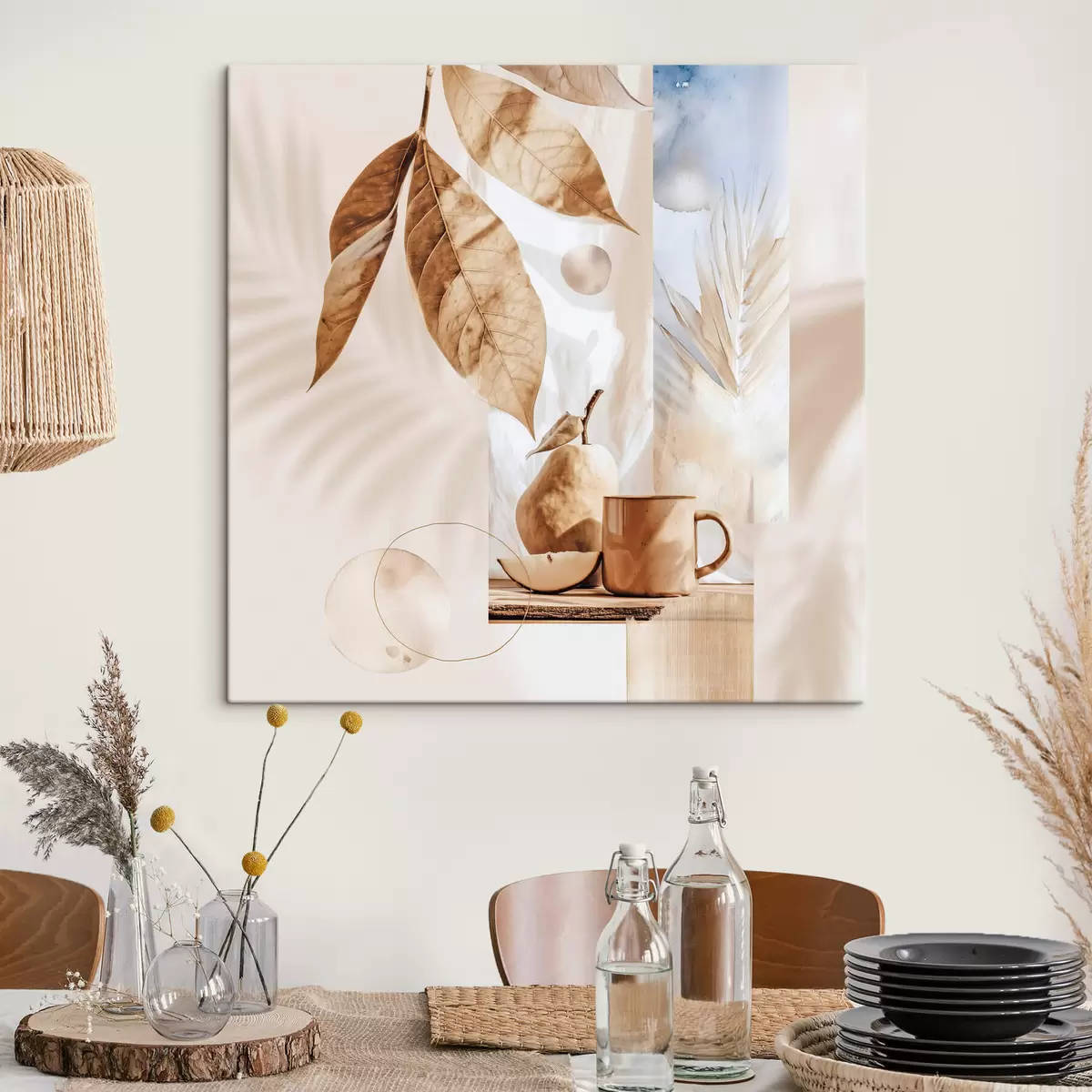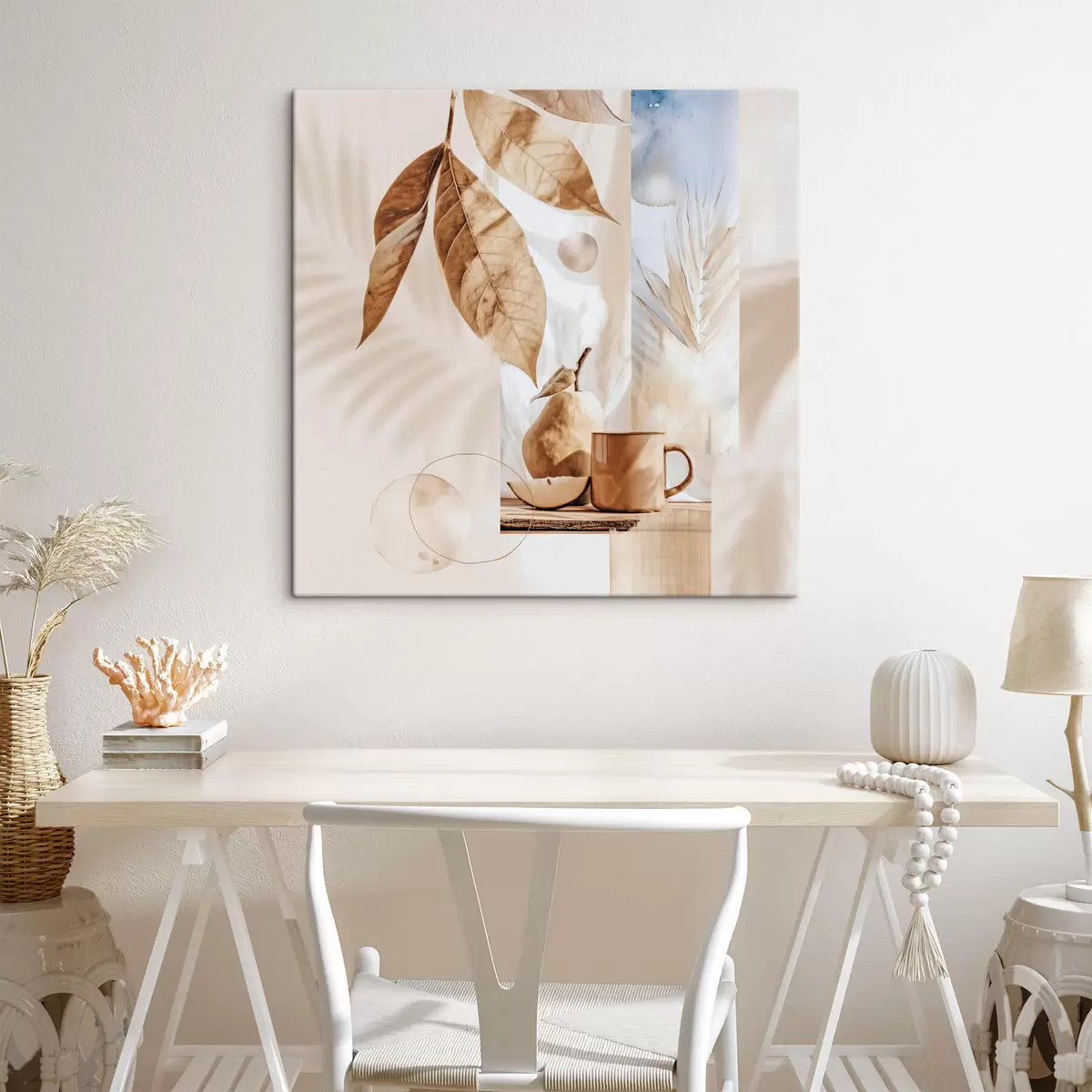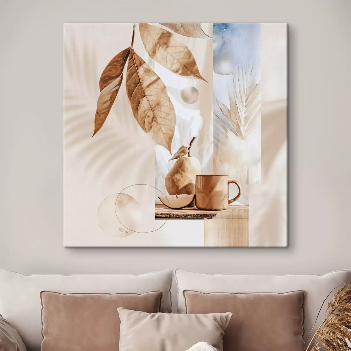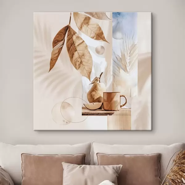 Pictură pe pânză Rezumat cu frunze, pară și ceașcă Nr s47047