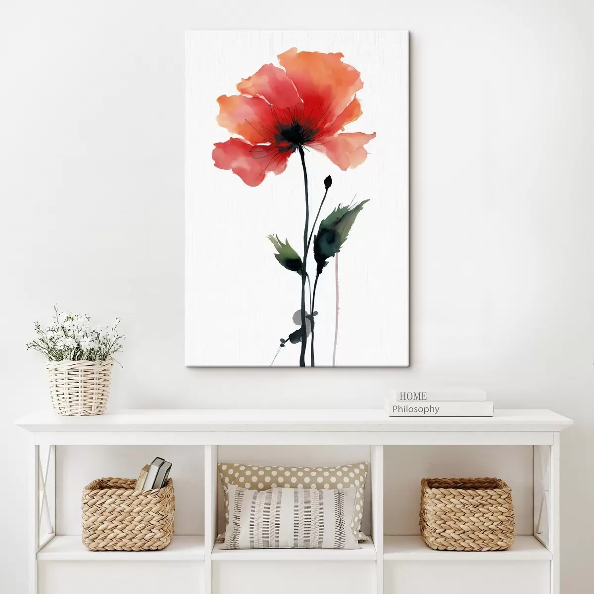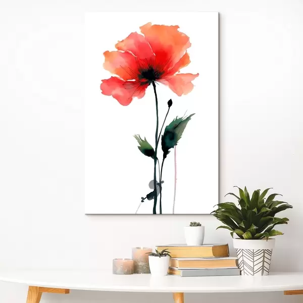 Pictură pe pânză Mac în acuarelă într-o paletă calmă, cu tranziții delicate de culori Nr s47087