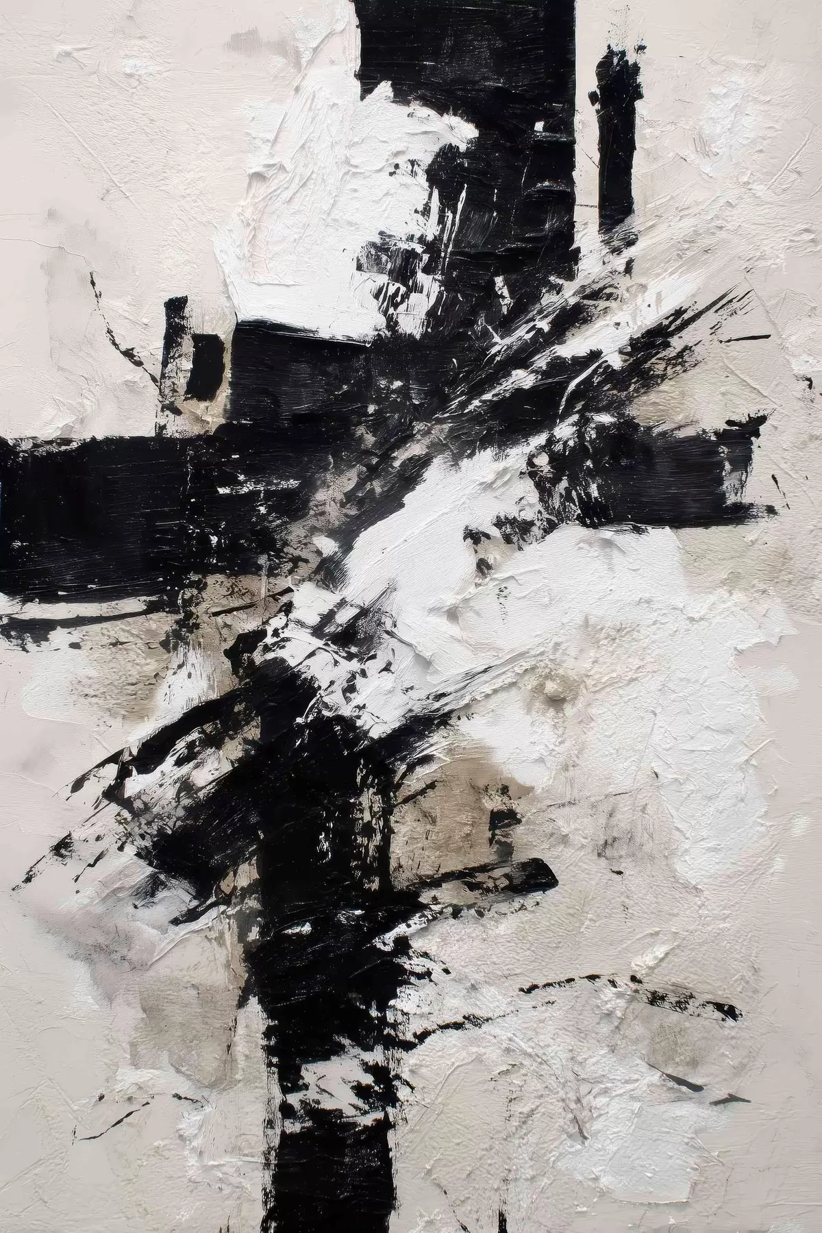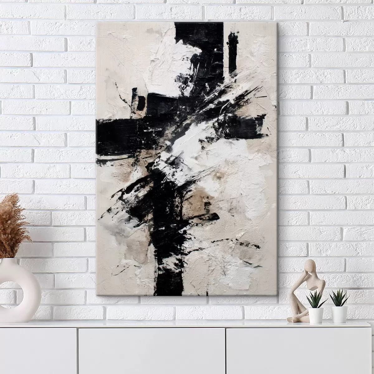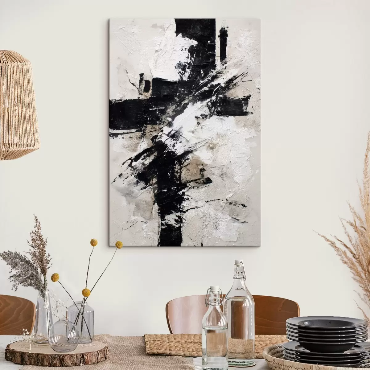Tablouri Interior modern abstract, cu linii haotice și tușe volumetrice în stilul picturii pe pânză s47090