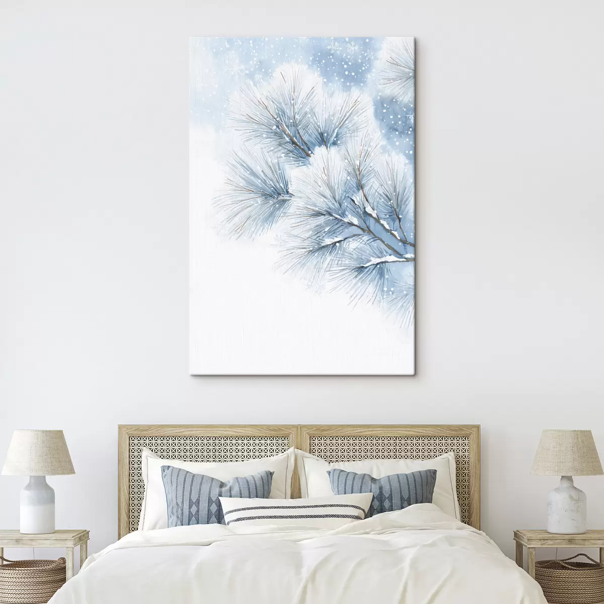 Pictură pe pânză ramură de pin acoperită de zăpadă în stil acuarelă Nr s47114