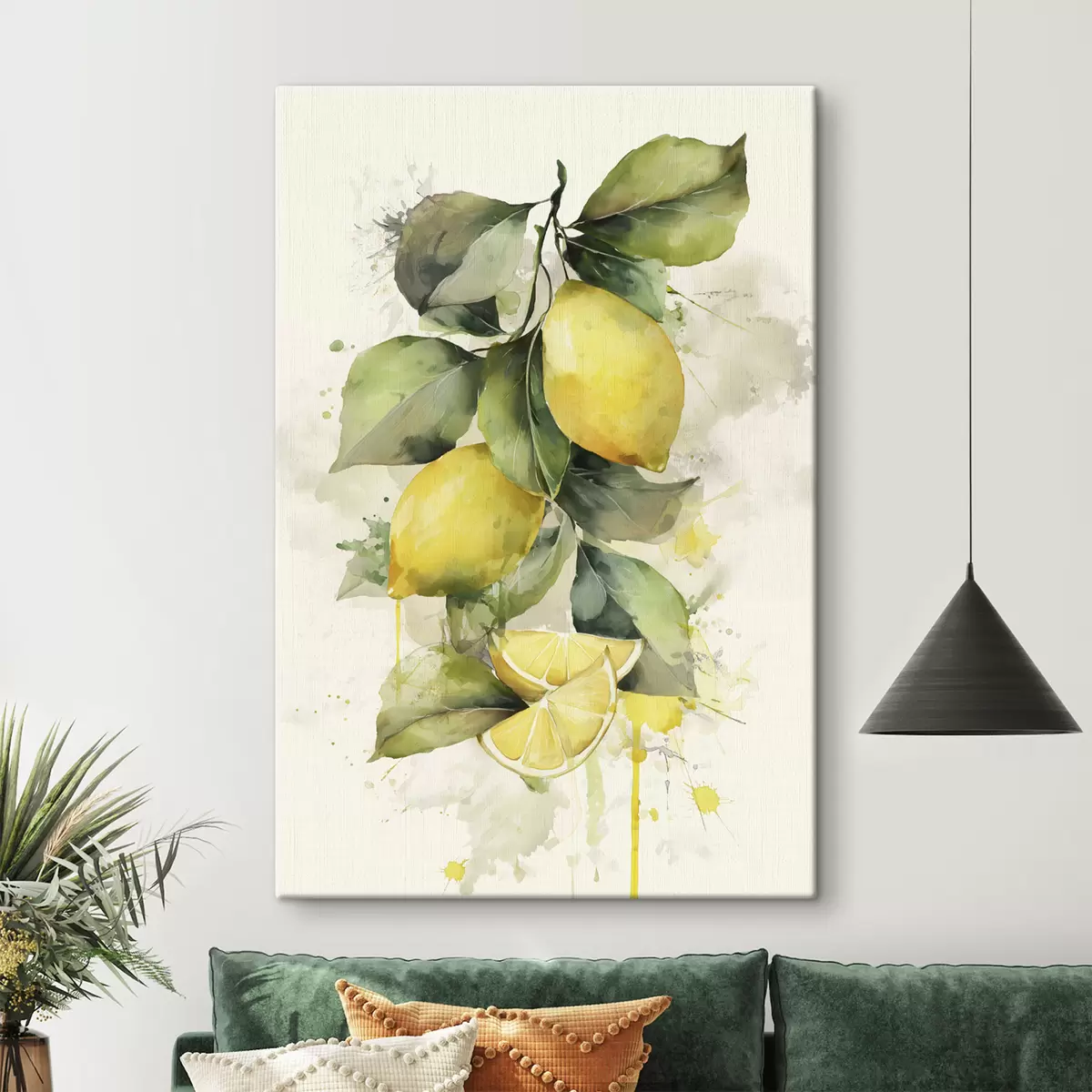 Pictură pe pânză ramură în stil acuarelă cu lămâi Nr s47124