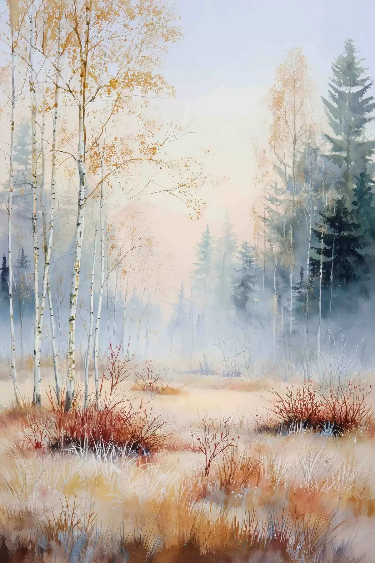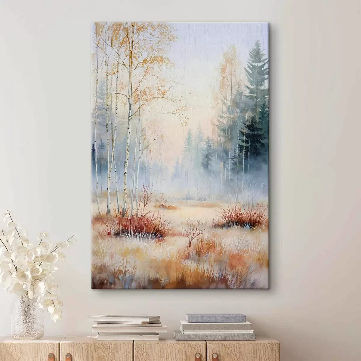 Pictură pe pânză peisaj primele înghețuri în pădure Nr s47129