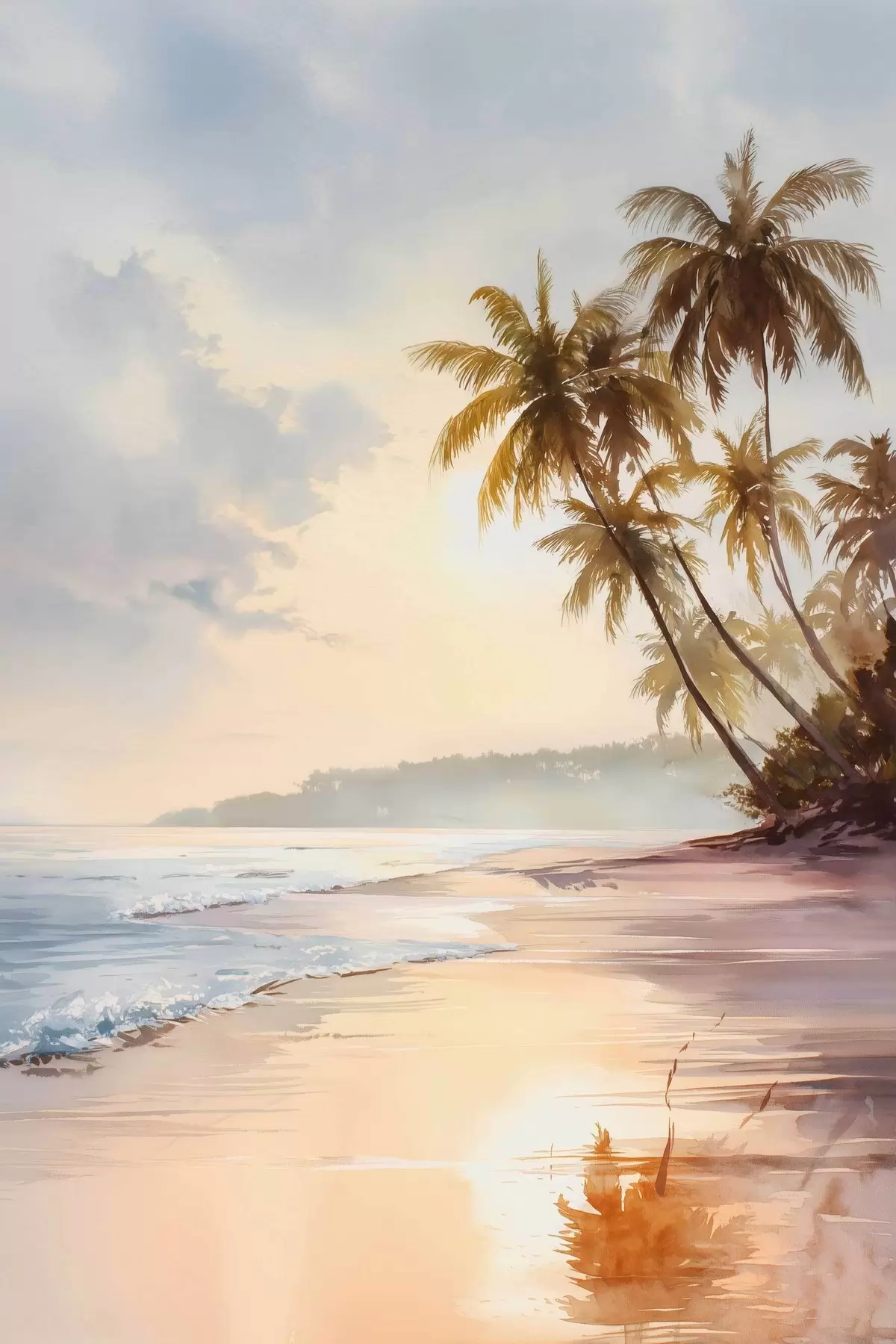 Tablouri plaja la apusul soarelui pe o insulă în stil acuarelă s47135