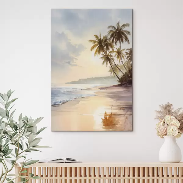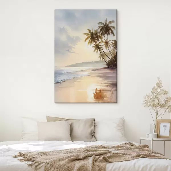 Pictură pe pânză plaja la apusul soarelui pe o insulă în stil acuarelă Nr s47135
