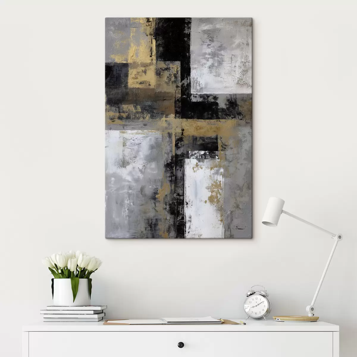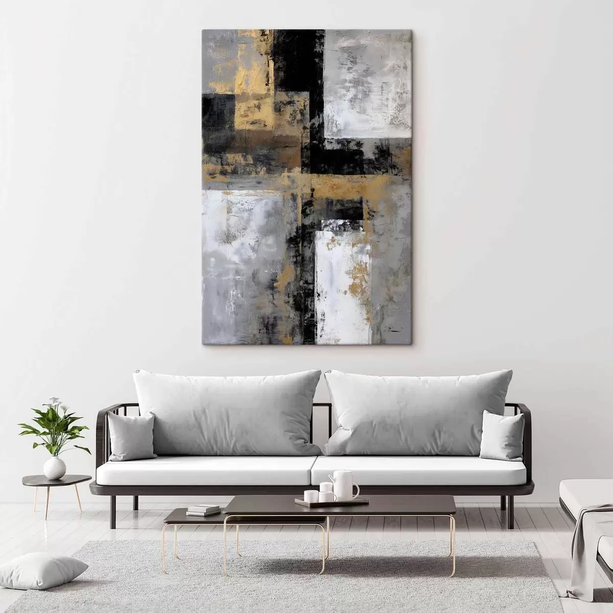 Tablouri abstracție contemporană texturală în nuanțe de negru, gri și alb s47139