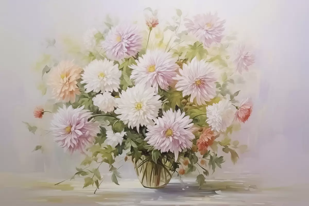 Pictură pe pânză Crizanteme într-un ghiveci Nr s47154
