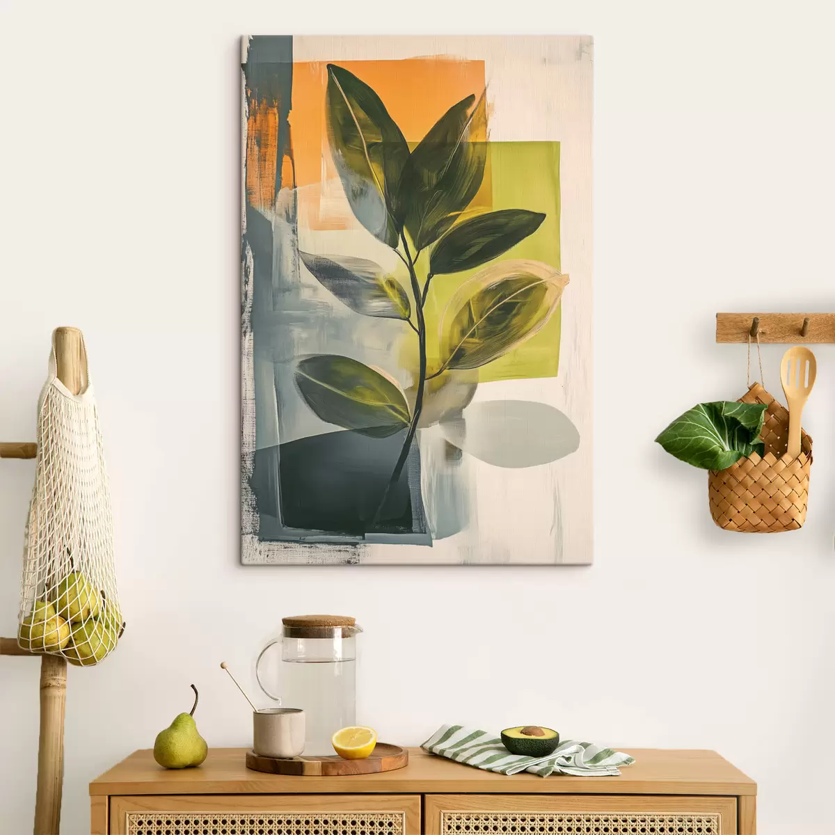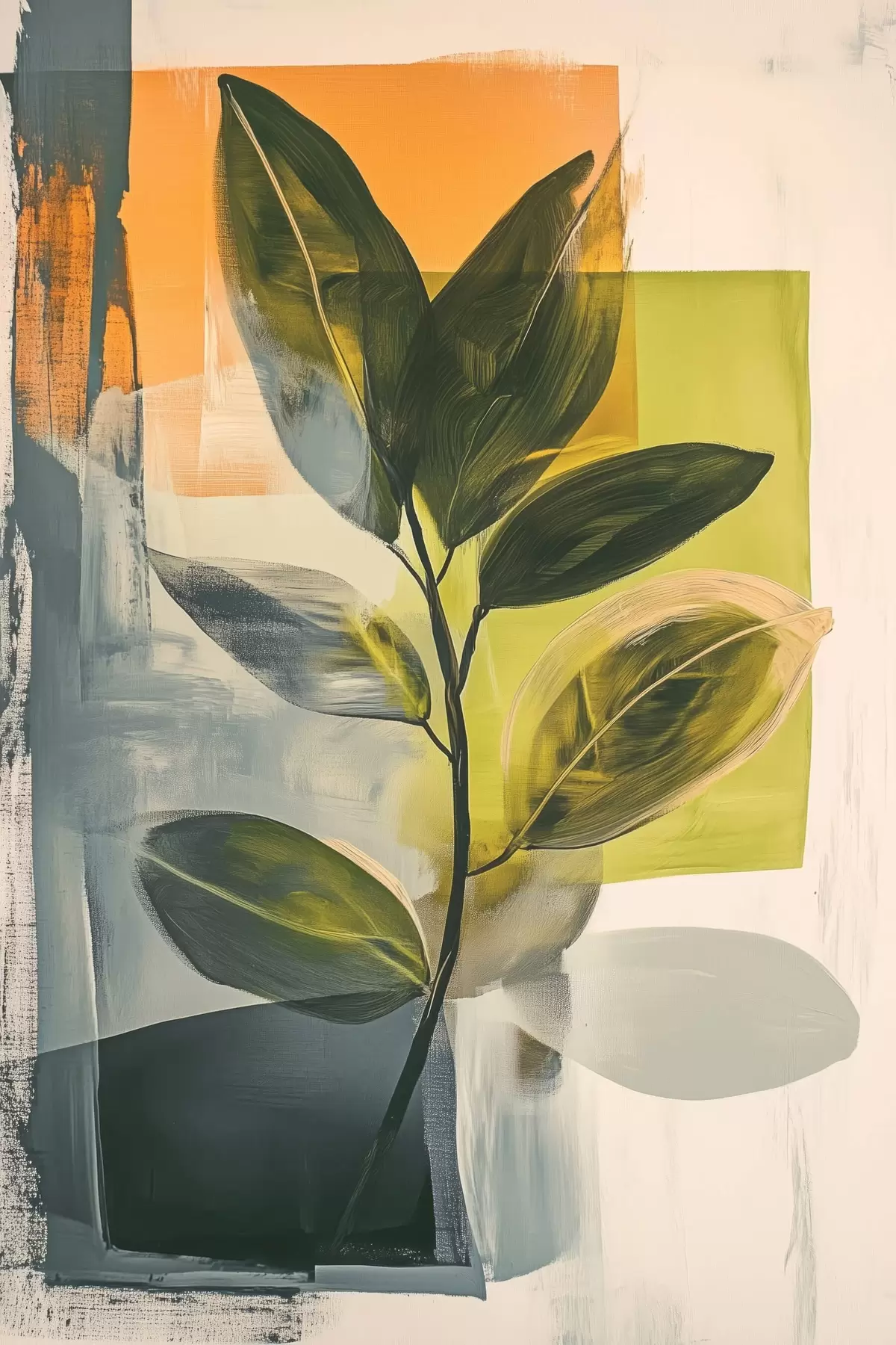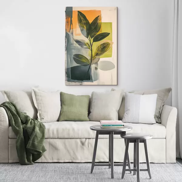 Pictură pe pânză O ramură cu frunze pe un fundal abstract Nr s47249