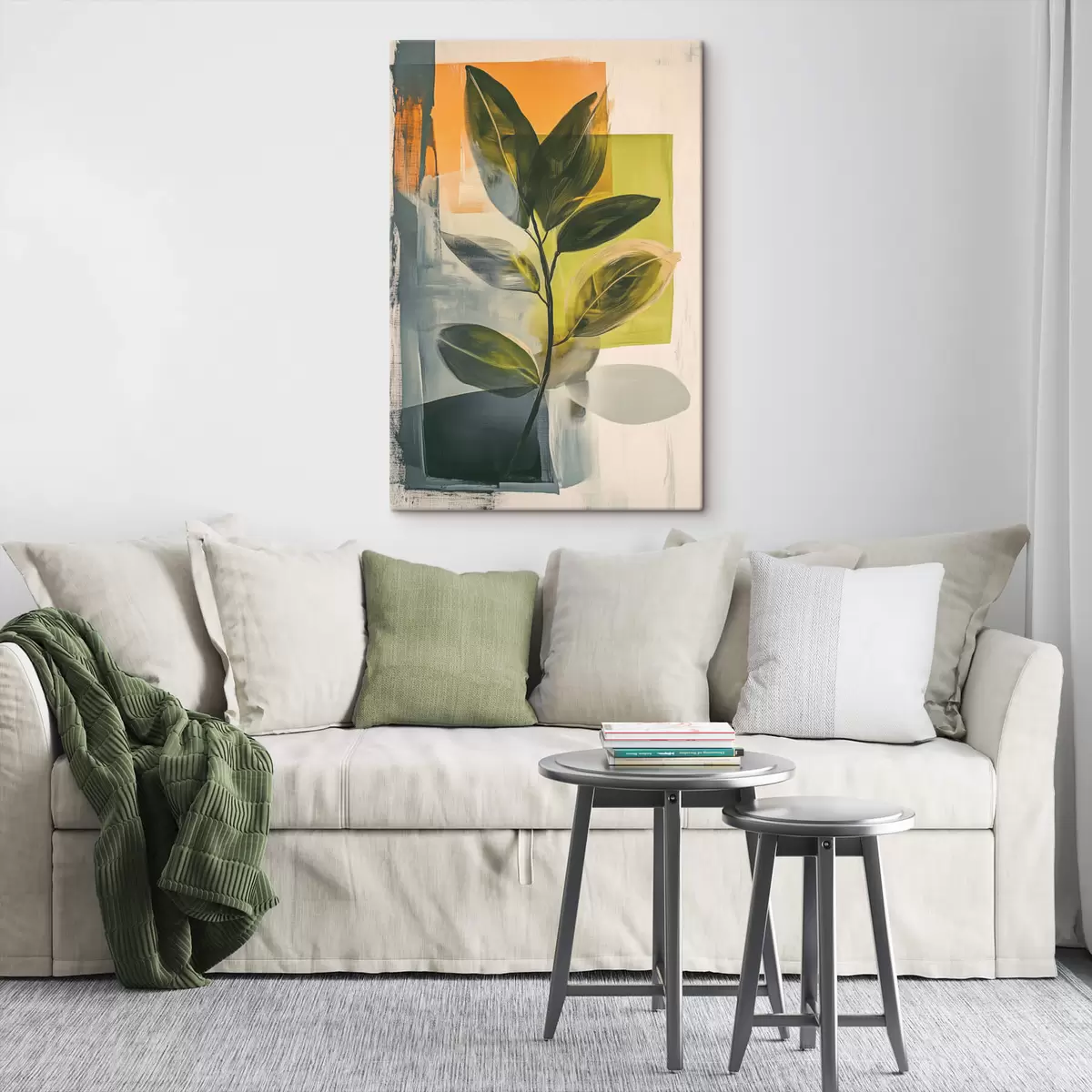 Tablouri O ramură cu frunze pe un fundal abstract s47249