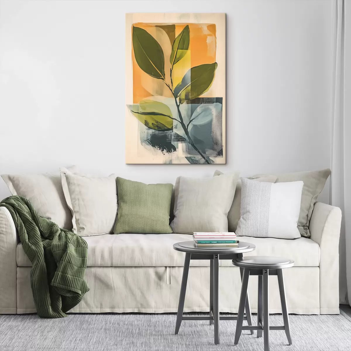 Pictură pe pânză O ramură cu frunze pe un fundal abstract Nr s47250