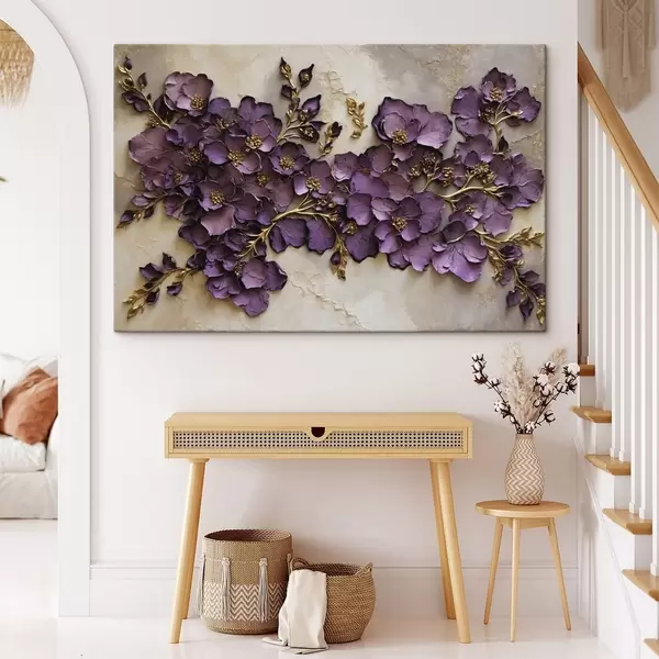 Pictură pe pânză Aranjament floral cu flori mov și accente Nr s47277