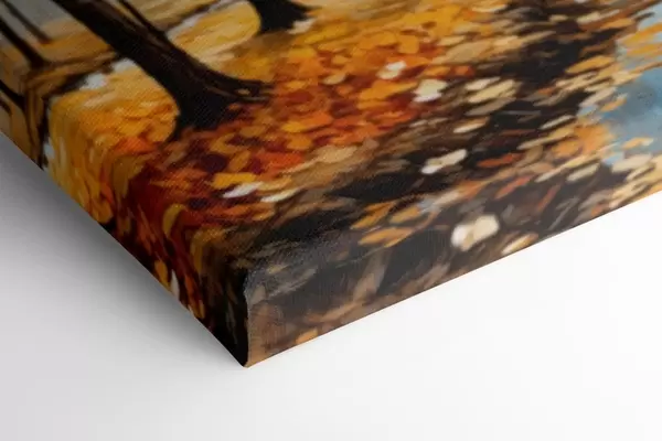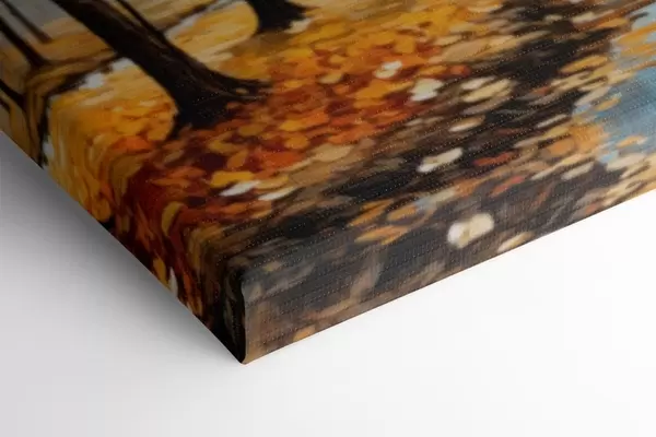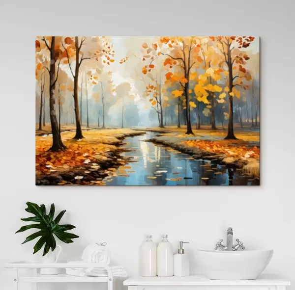 Pictură pe pânză Pădure de toamnă cu un pârâu și frunze galbene Nr s47278