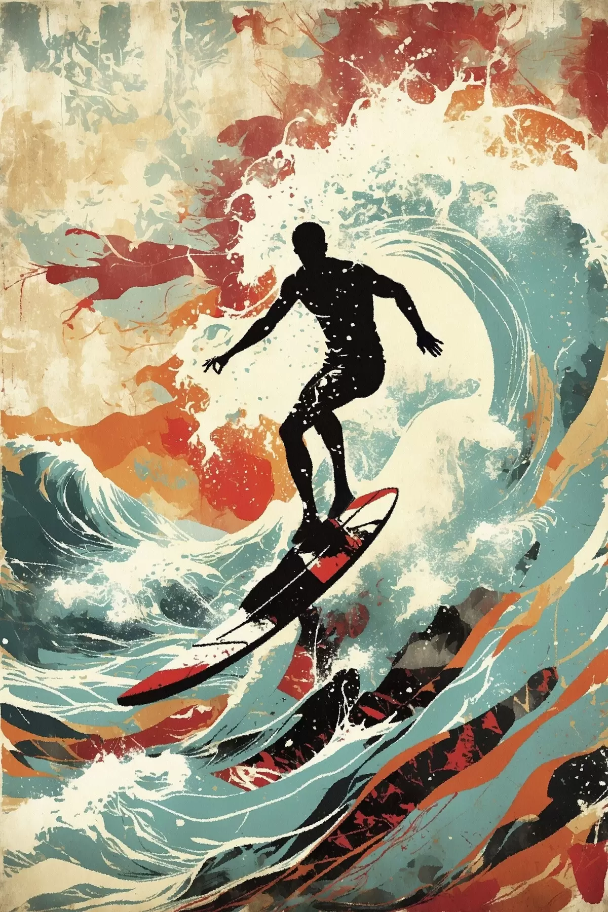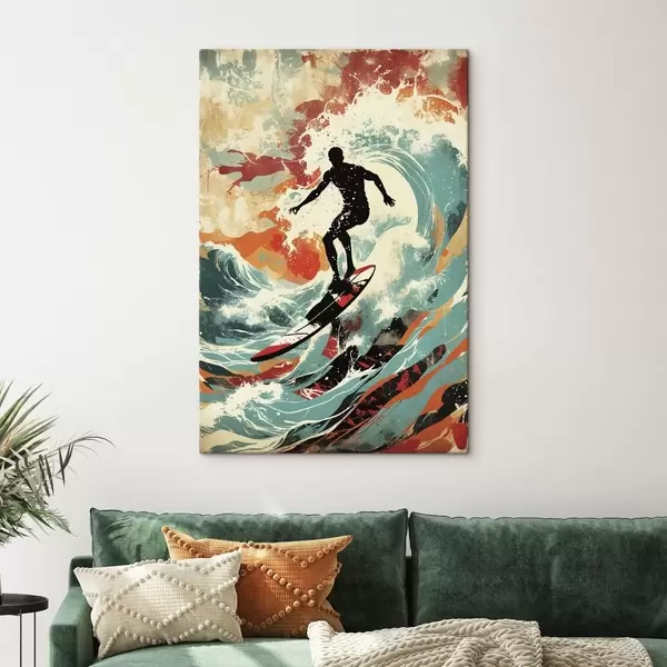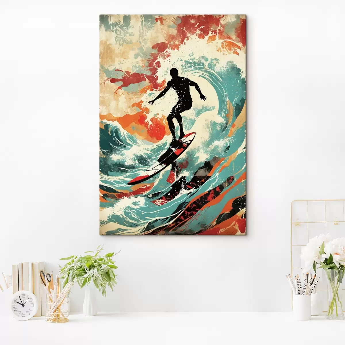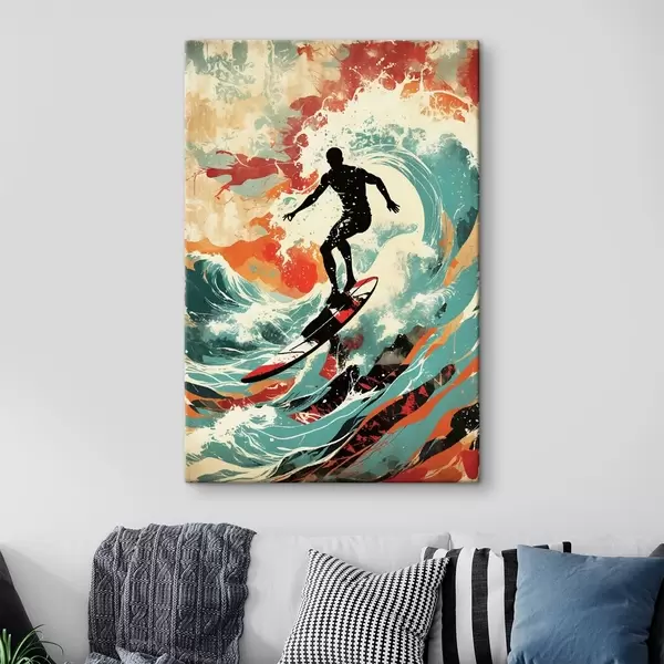 Tablouri Silueta unui surfer pe valuri în culori vii s47284