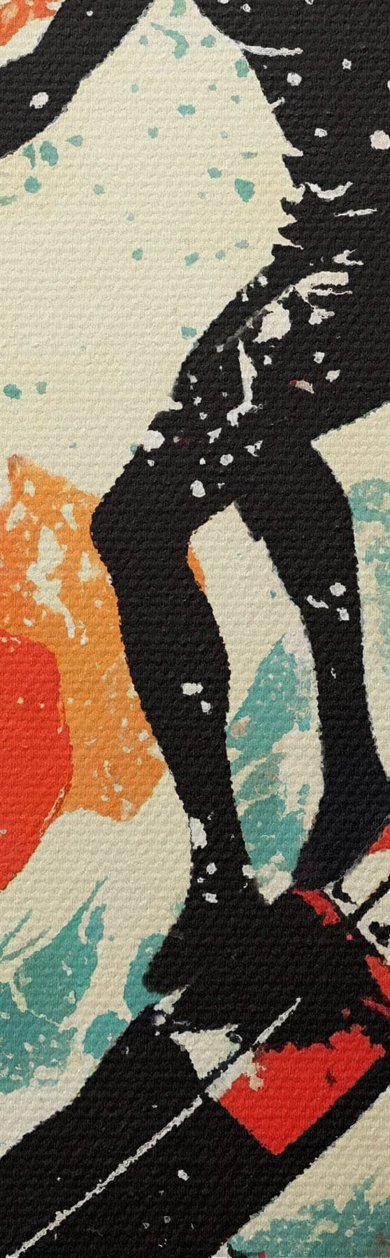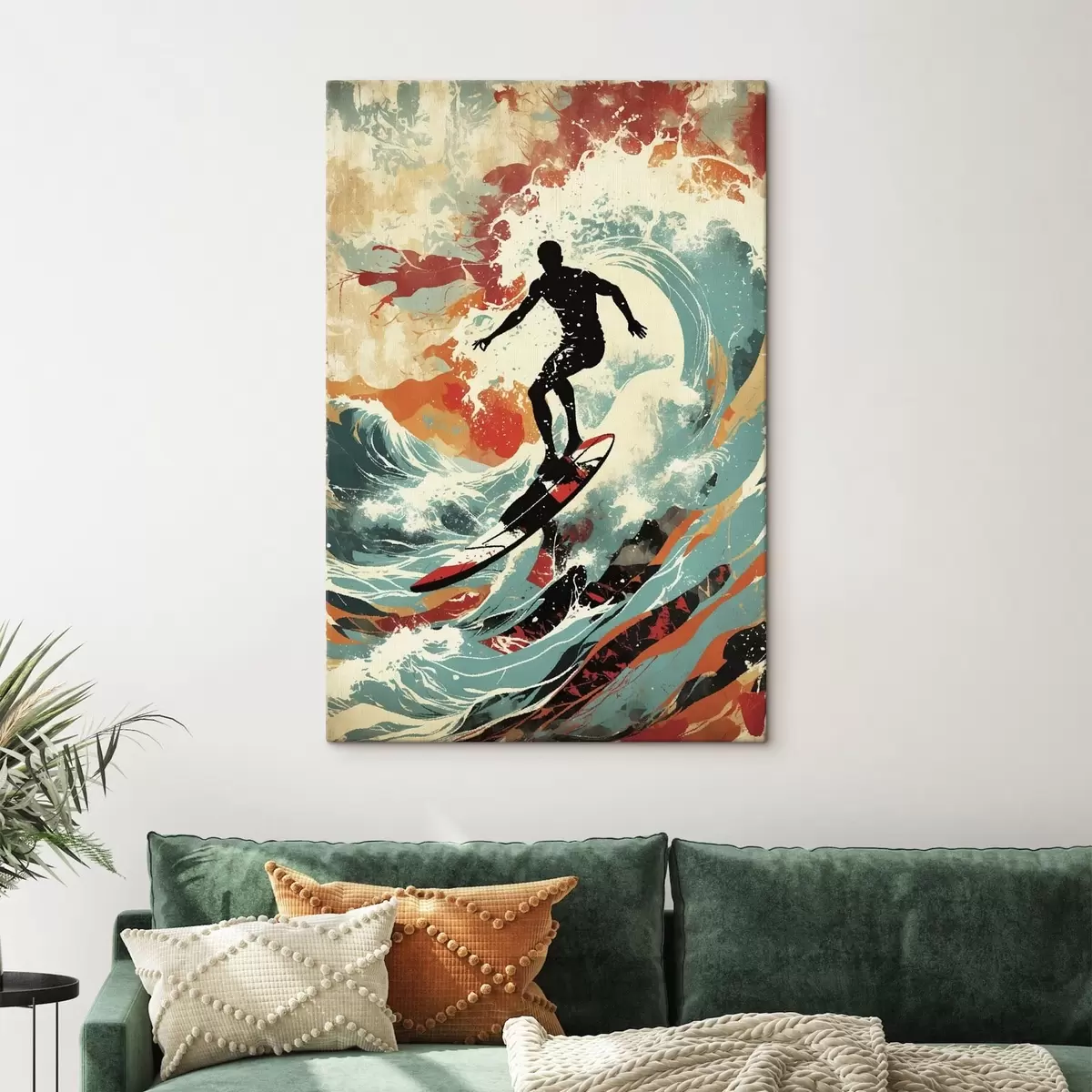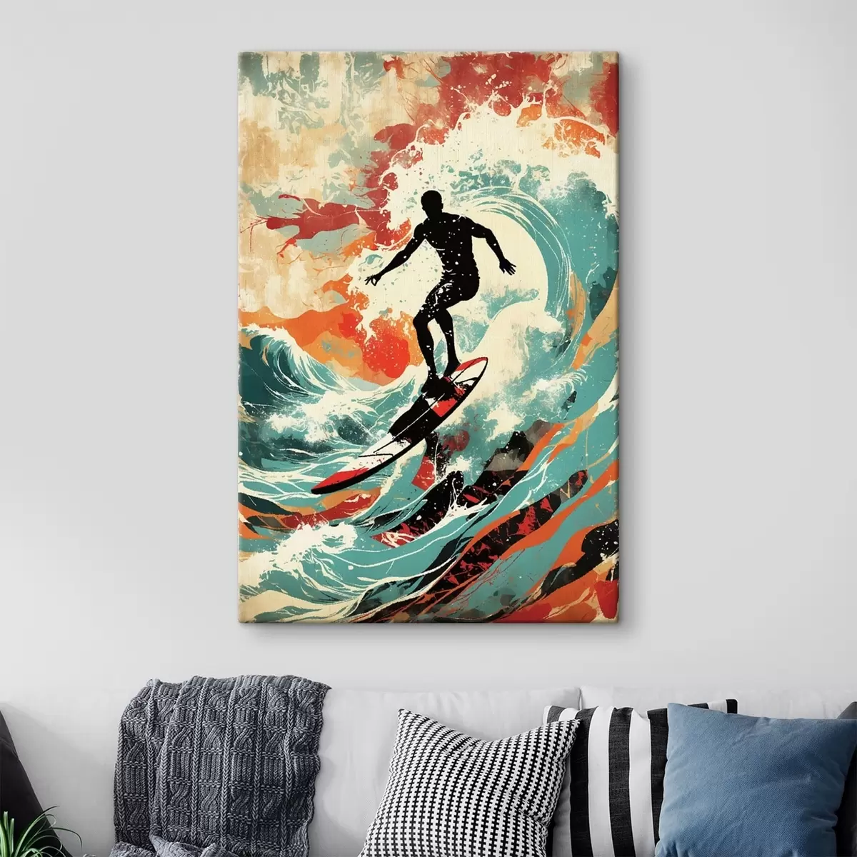 Pictură pe pânză Silueta unui surfer pe valuri în culori vii Nr s47284