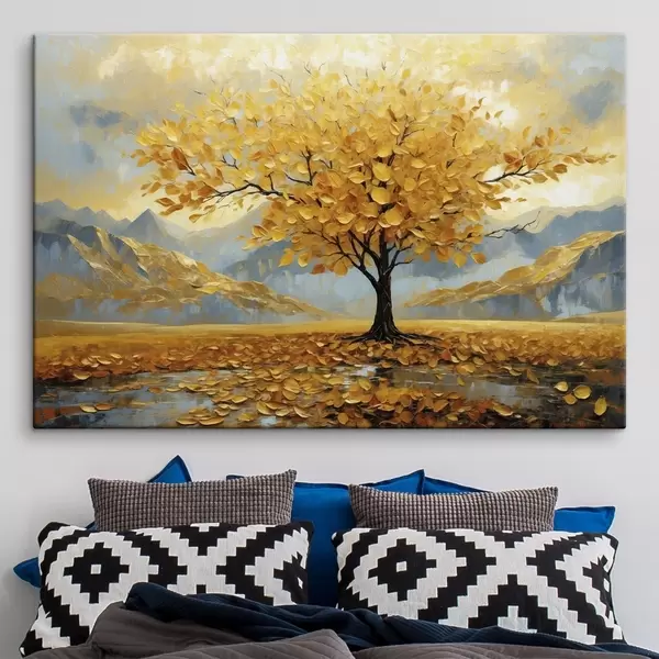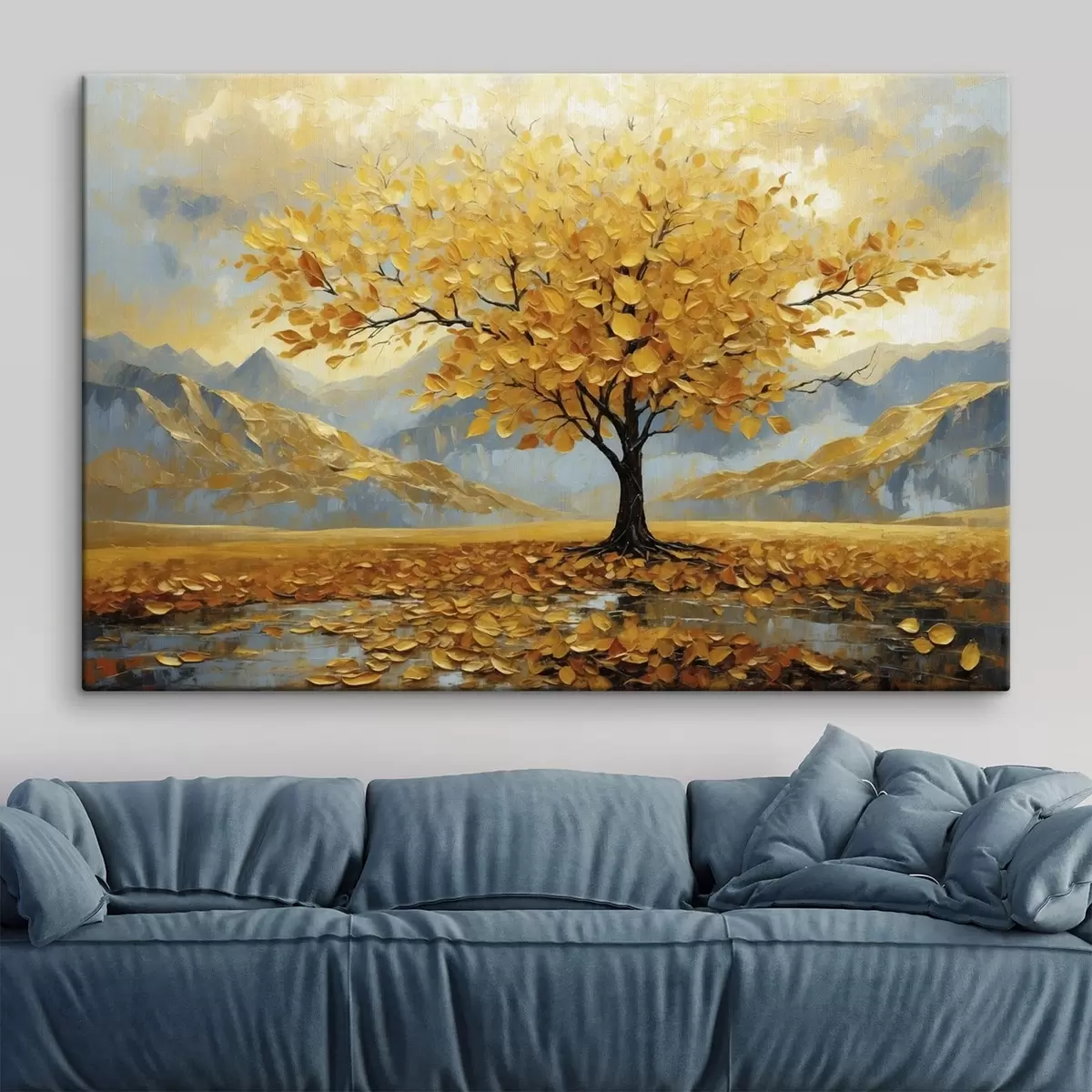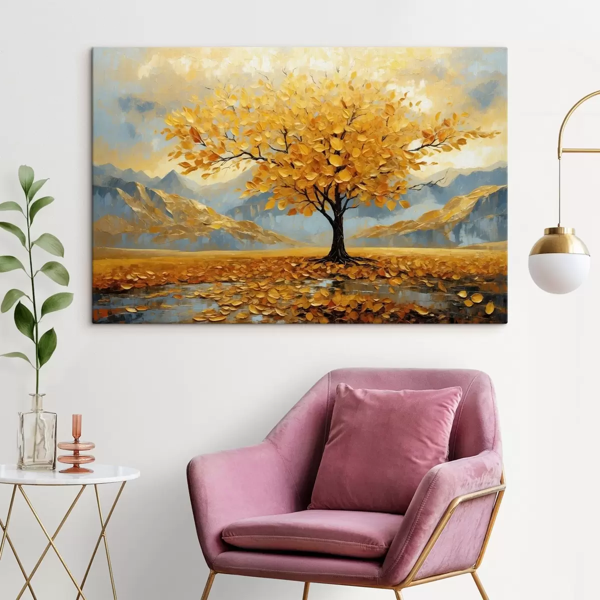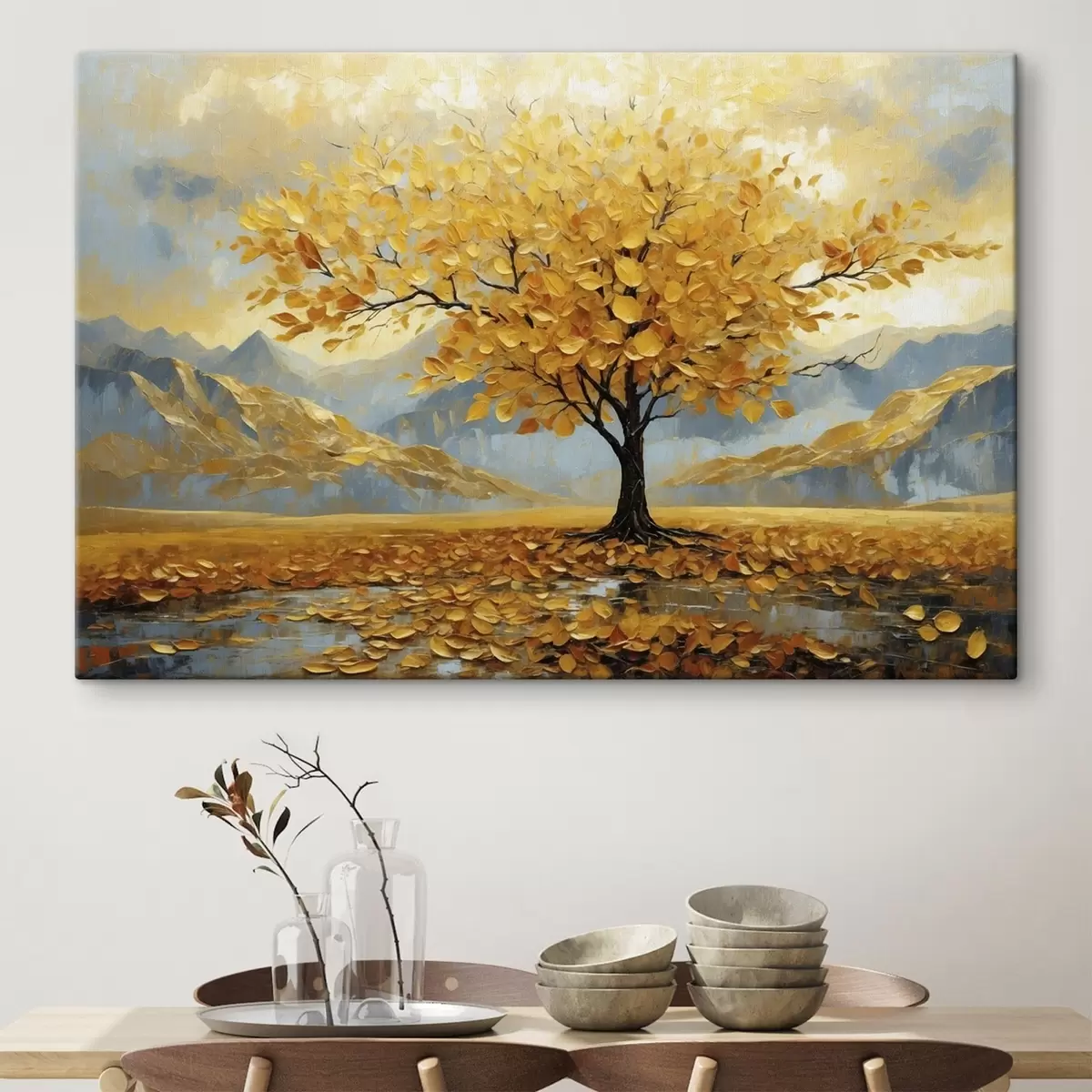 Tablouri Copac cu frunze galbene într-un peisaj montan s47285