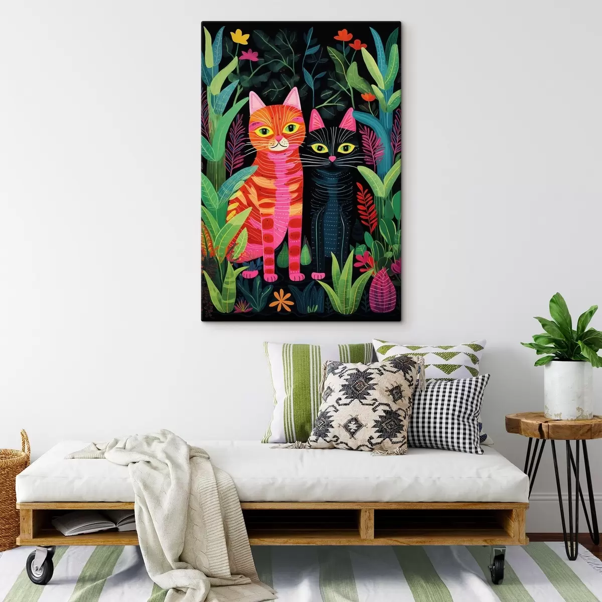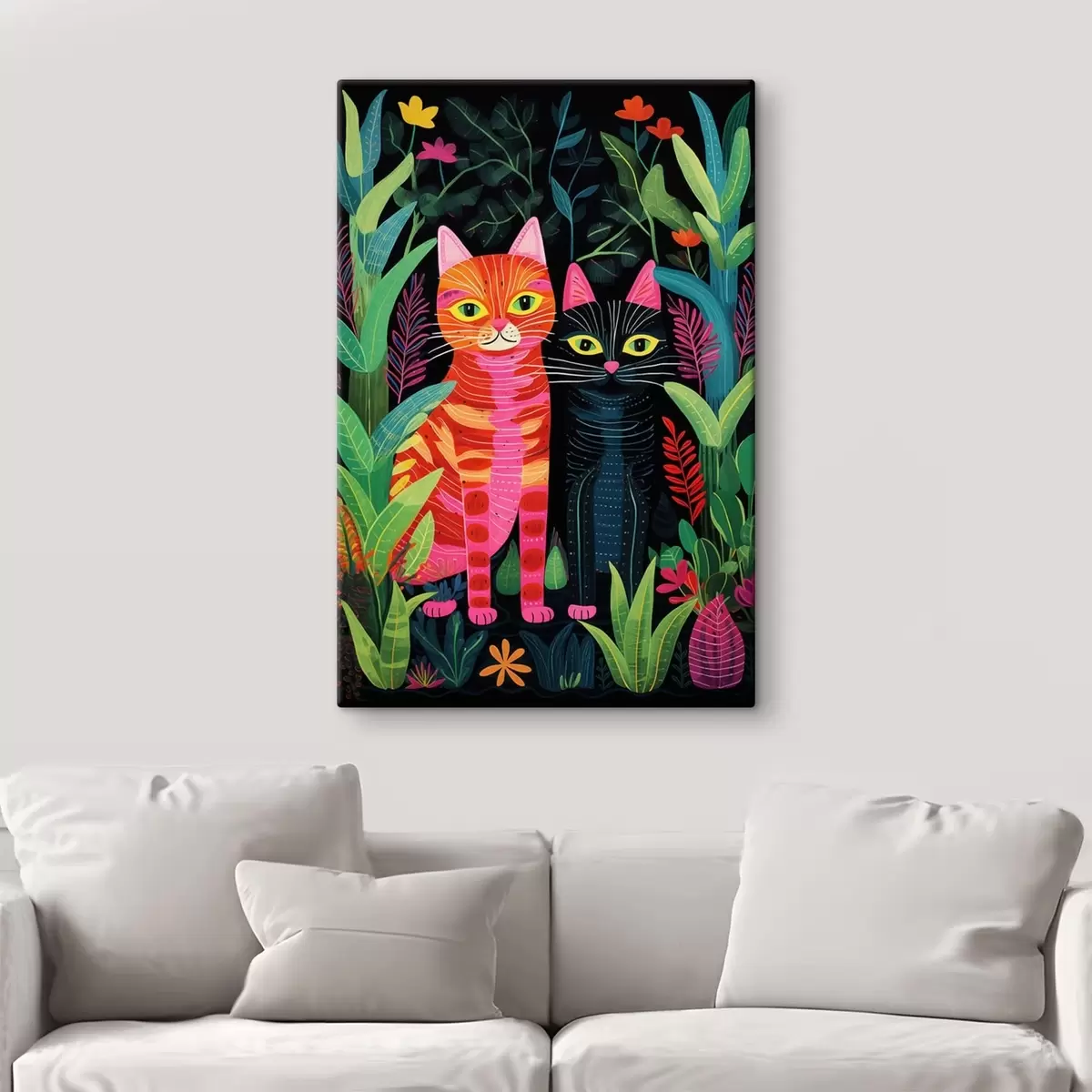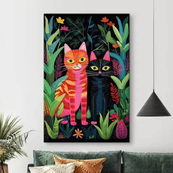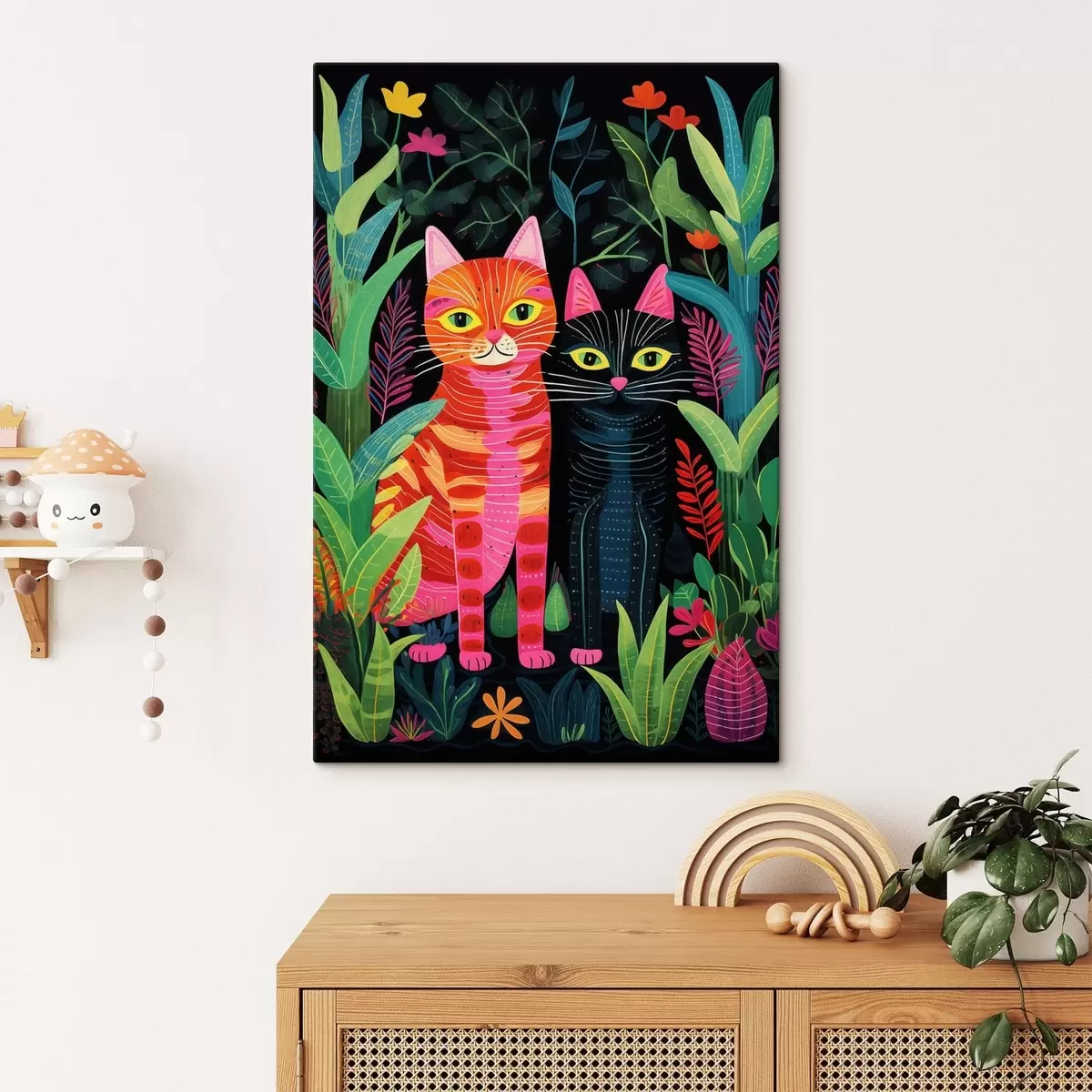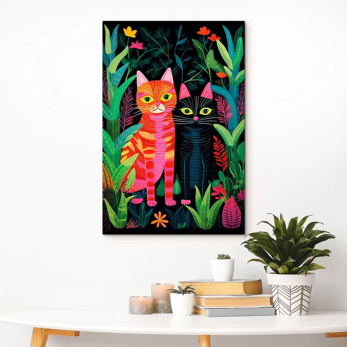 Pictură pe pânză Două pisici stilizate printre plante vii Nr s47298