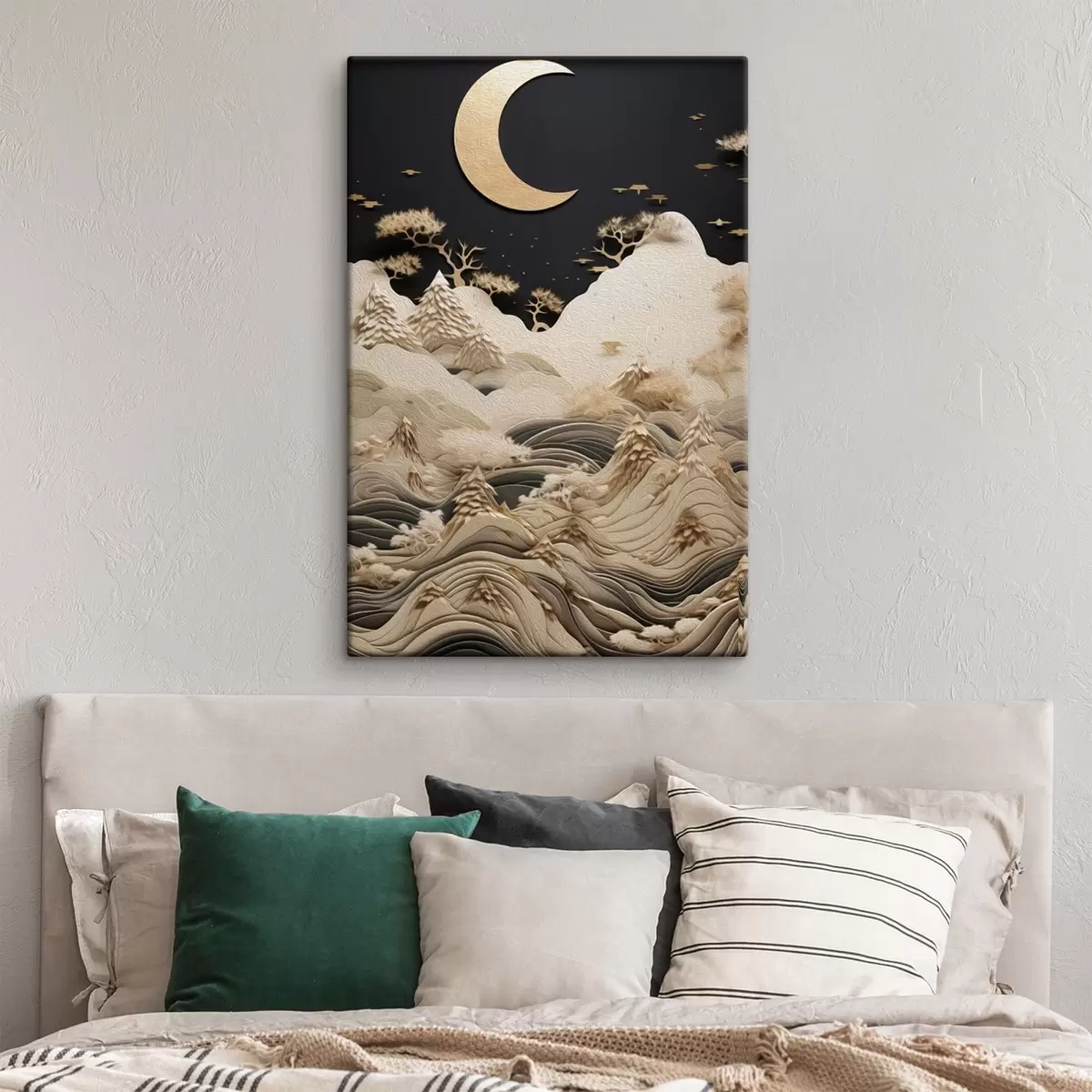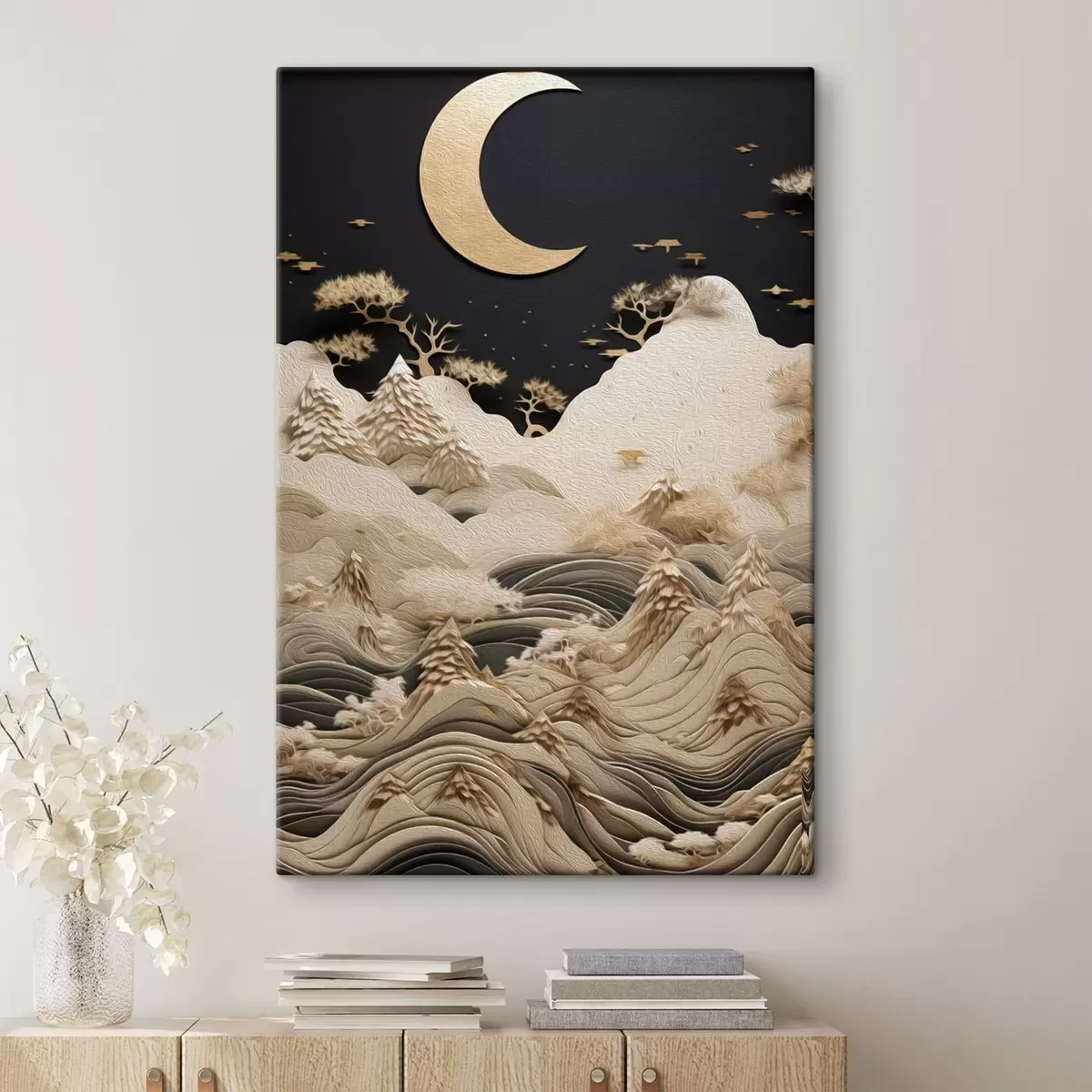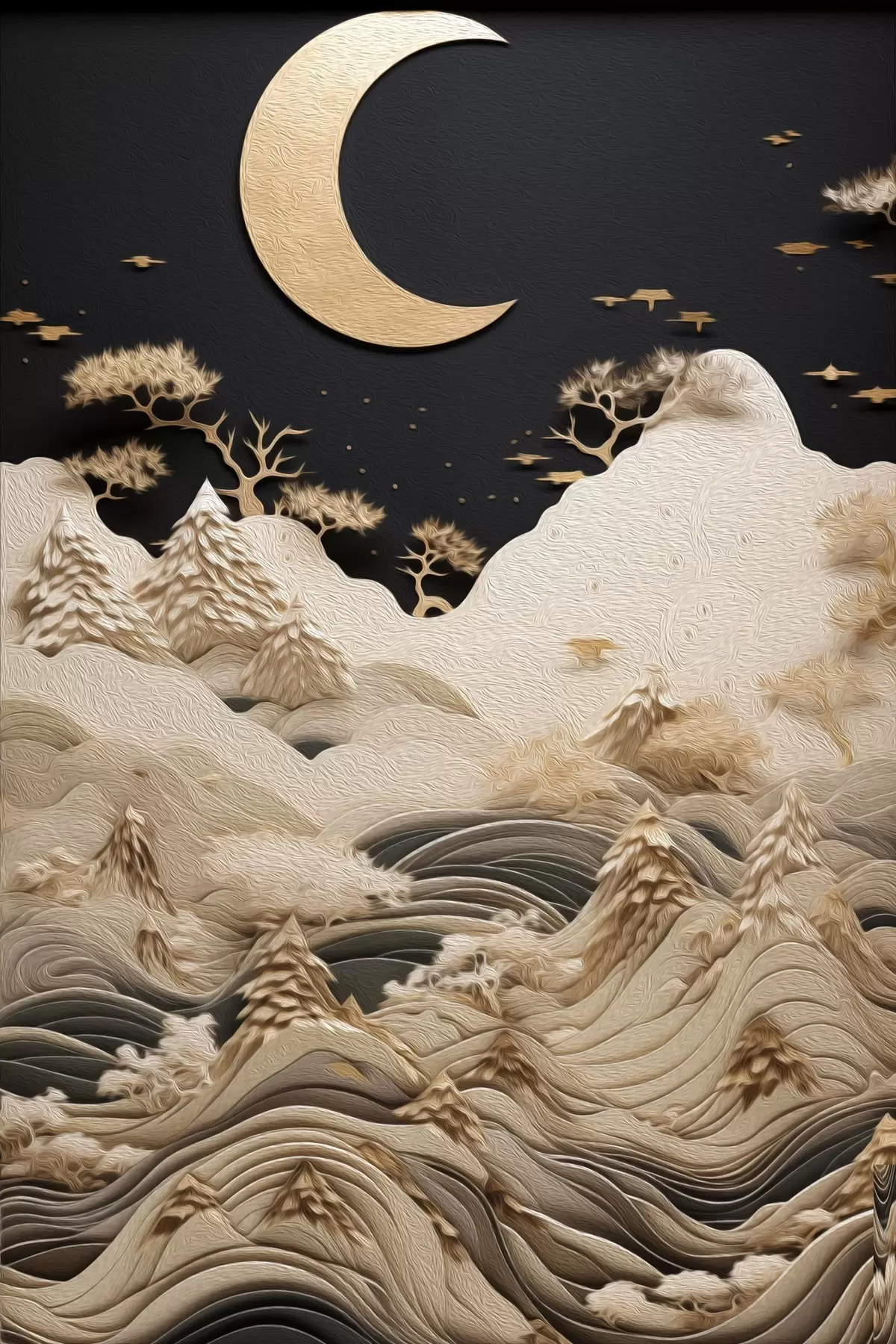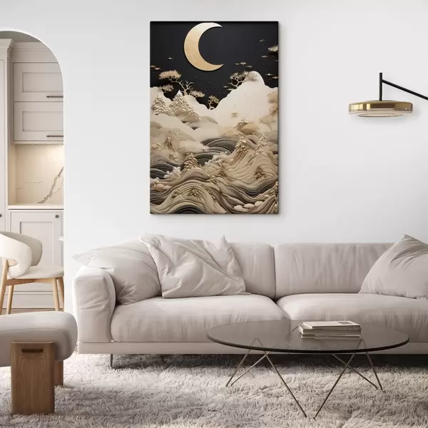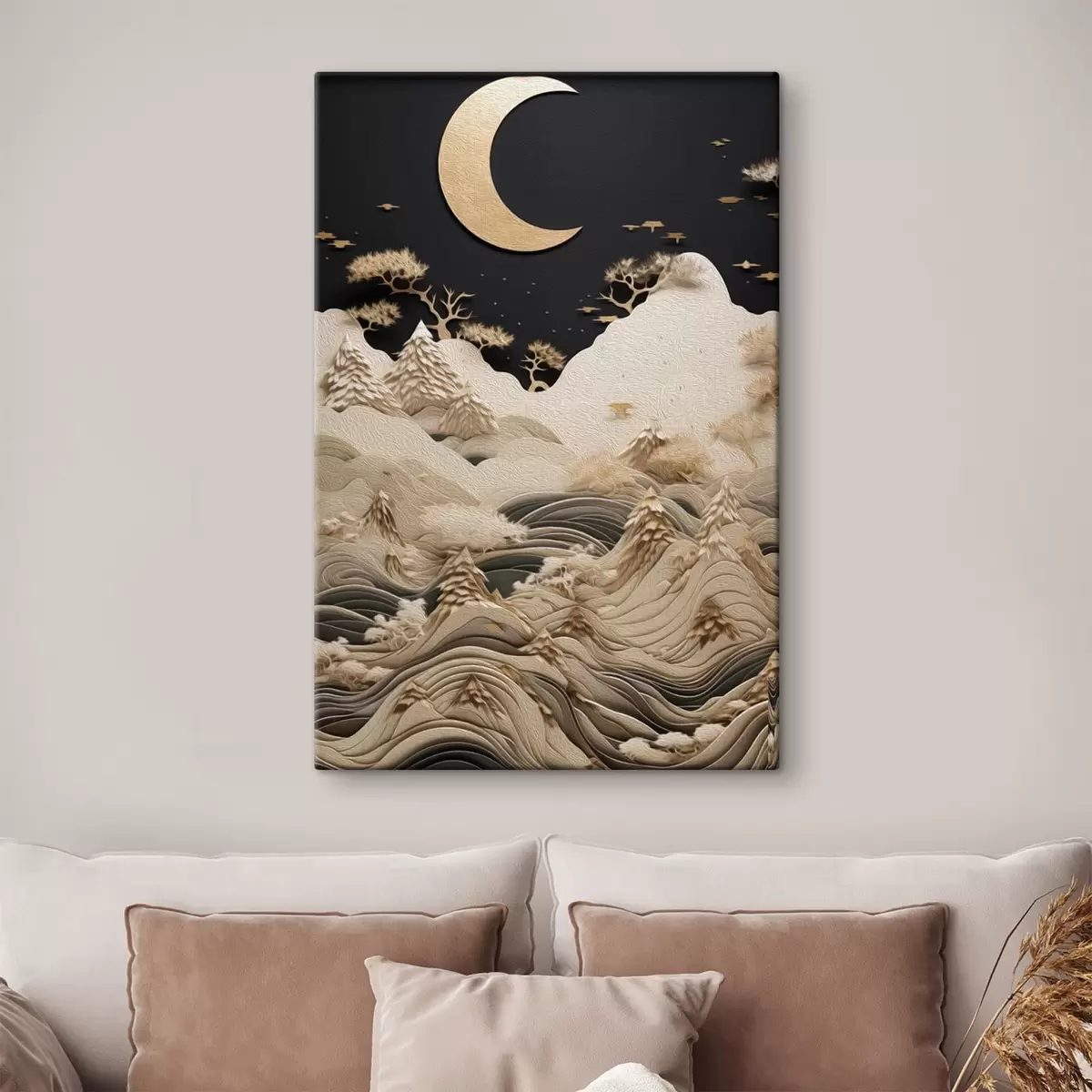 Pictură pe pânză Munți și copaci stilizați sub luna plină Nr s47300