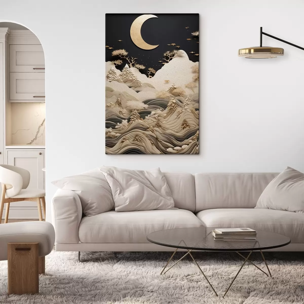 Tablouri Munți și copaci stilizați sub luna plină s47300