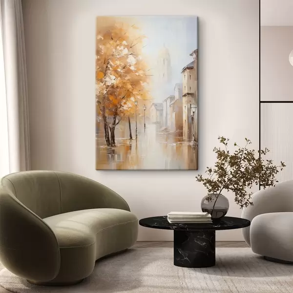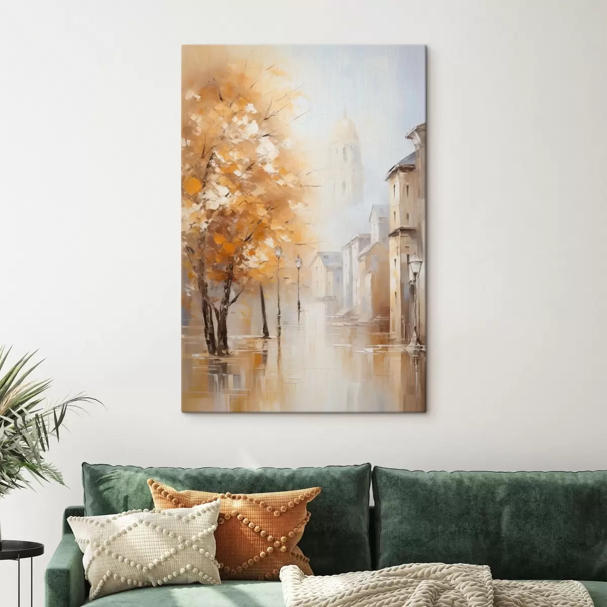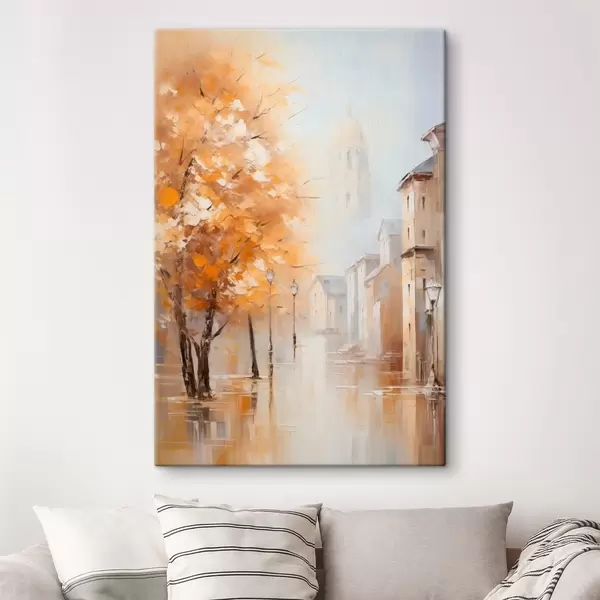 Pictură pe pânză Stradă cu copaci și o cupolă în ceață Nr s47304