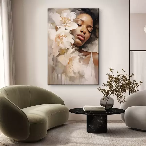 Pictură pe pânză Portret feminin lângă flori mari Nr s47307