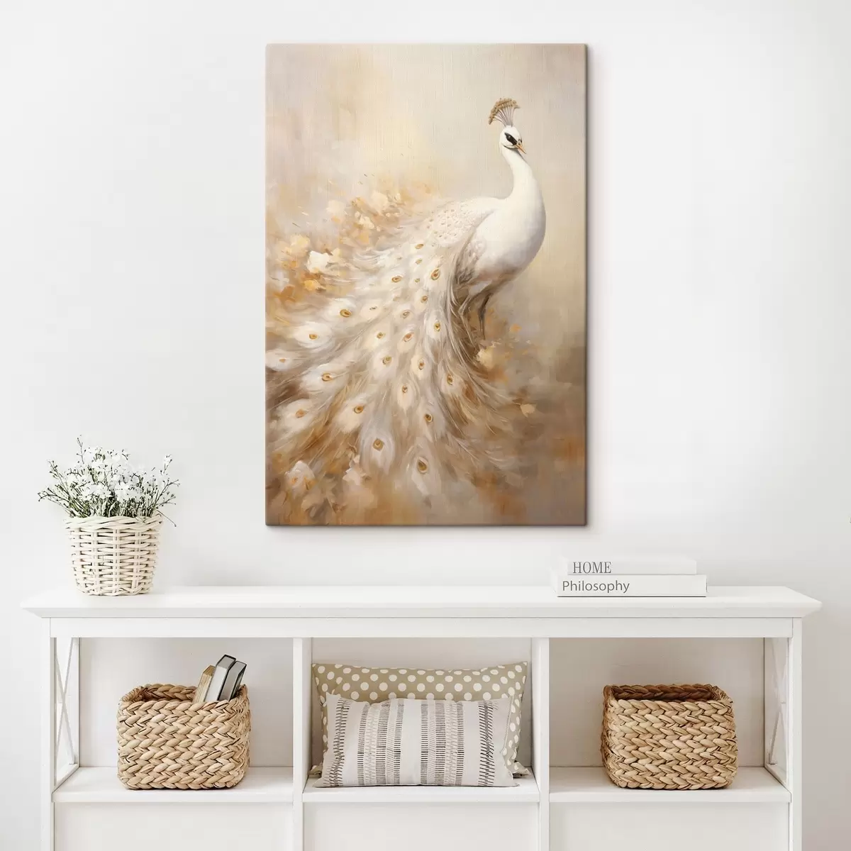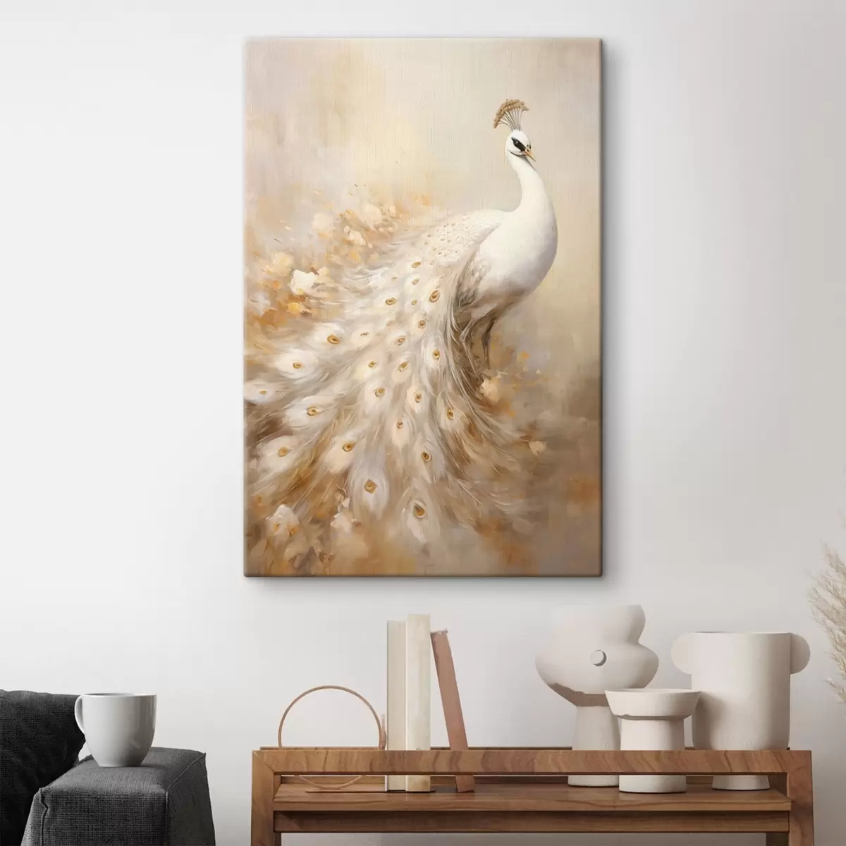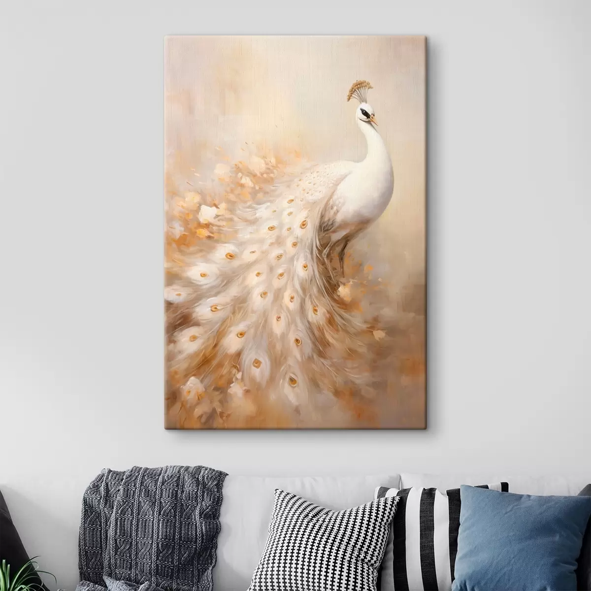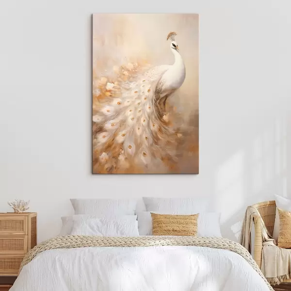 Pictură pe pânză Pasăre ușoară cu coadă lungă în tonuri aerisite Nr s47309